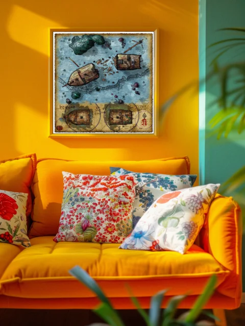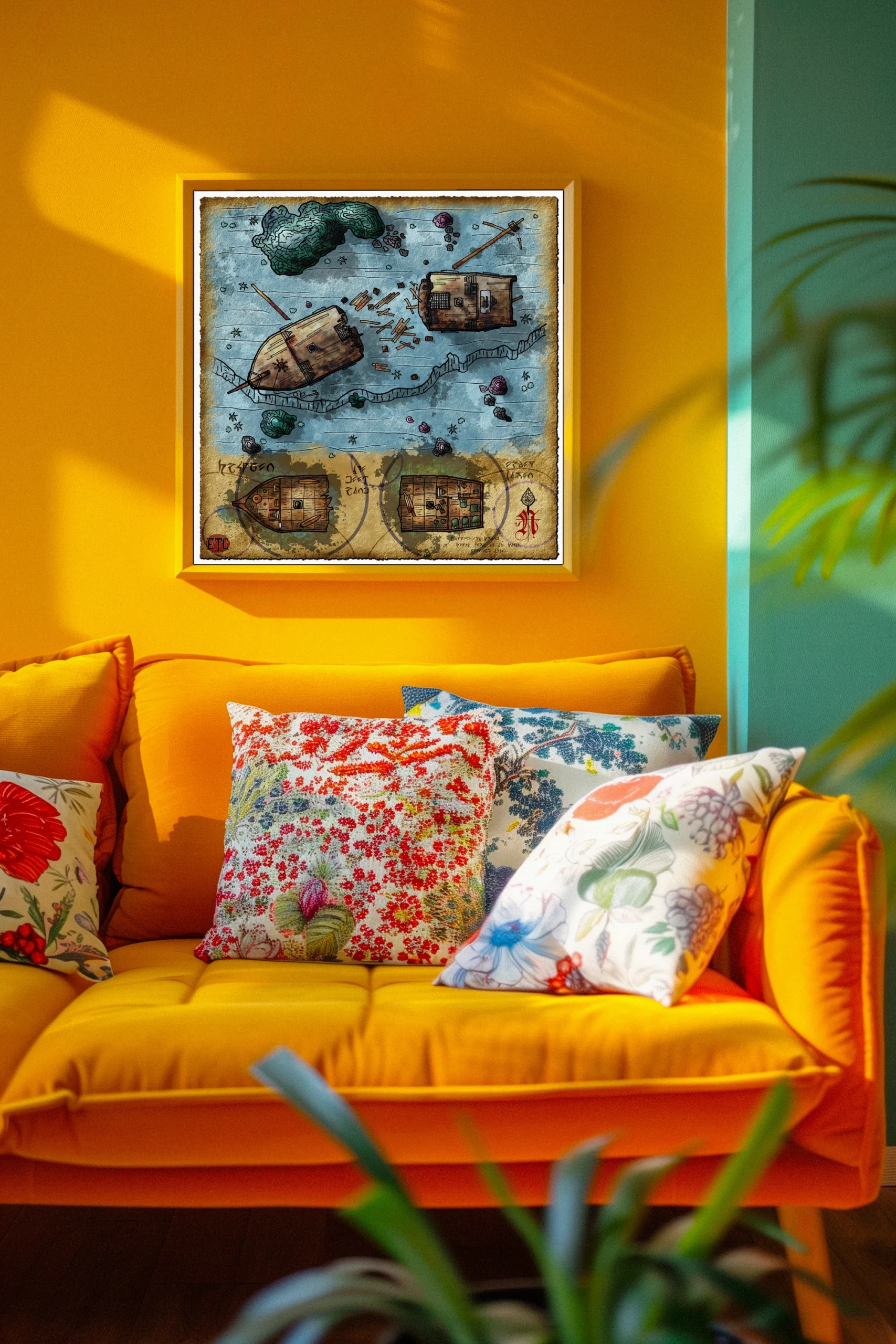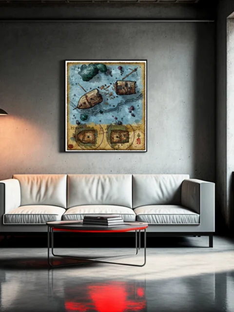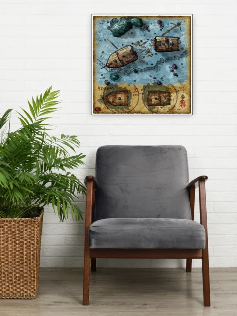 Wreckage sites carry campaign weight that coastal vistas never will. Dungeon masters running seafaring adventures need encounter maps that show consequence and danger. This sunken ship no labels fantasy battle map canvas print particularly serves tables where naval combat matters.