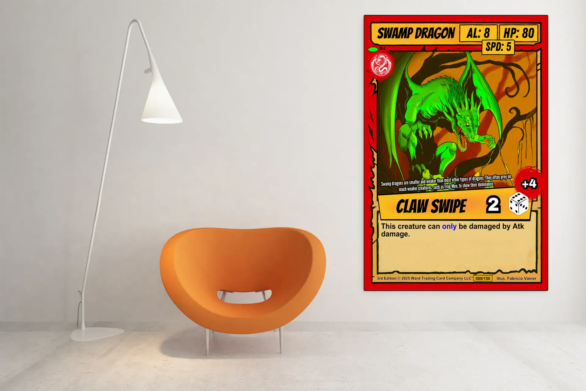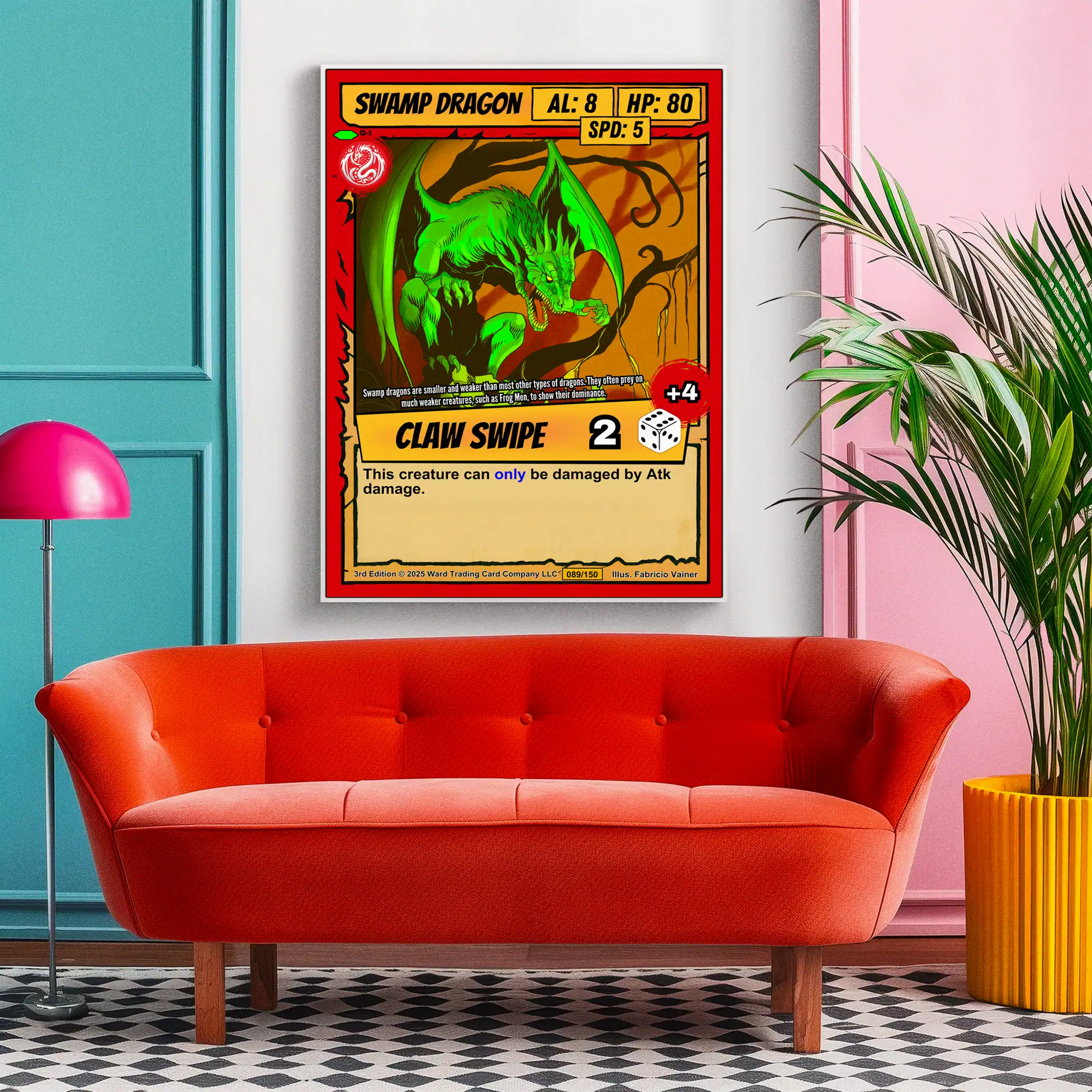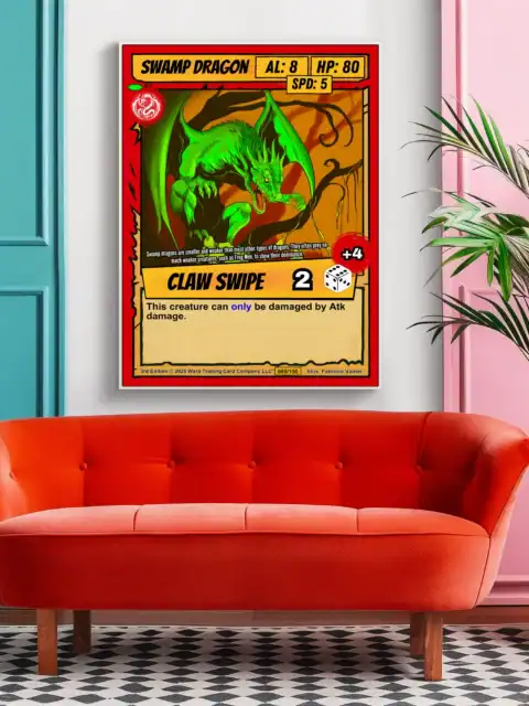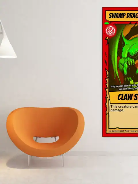 TCG collectors recognize authentic card art when they see it. You appreciate games that blend strategy with visual storytelling in classic comic style. This swamp dragon trading card canvas print particularly honors Ward TCG’s distinctive aesthetic.