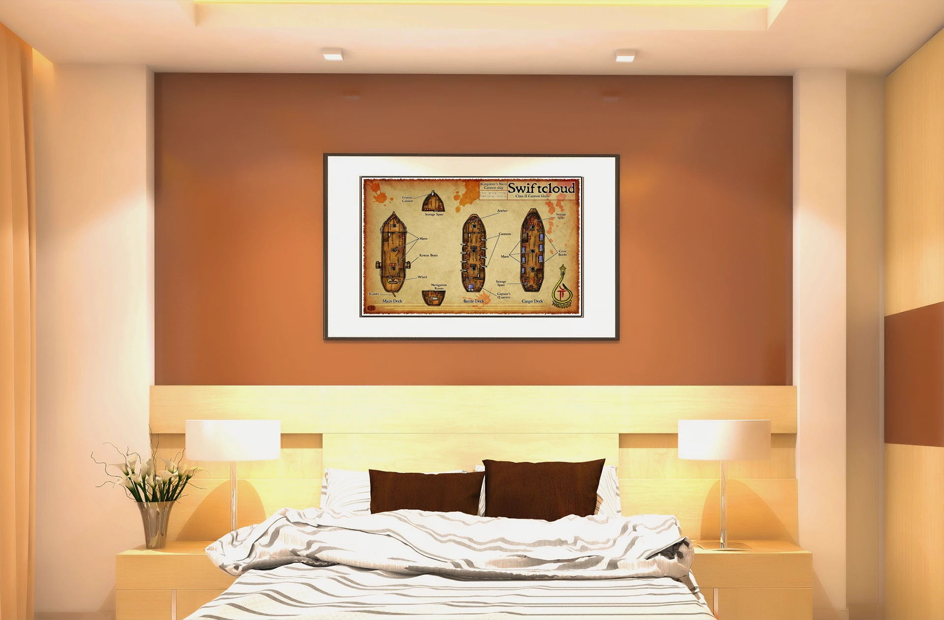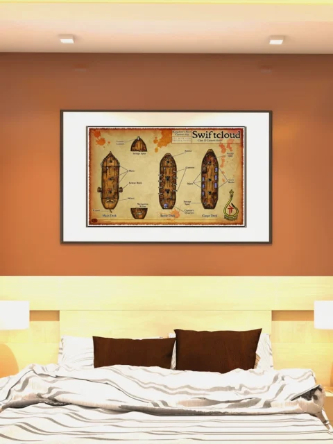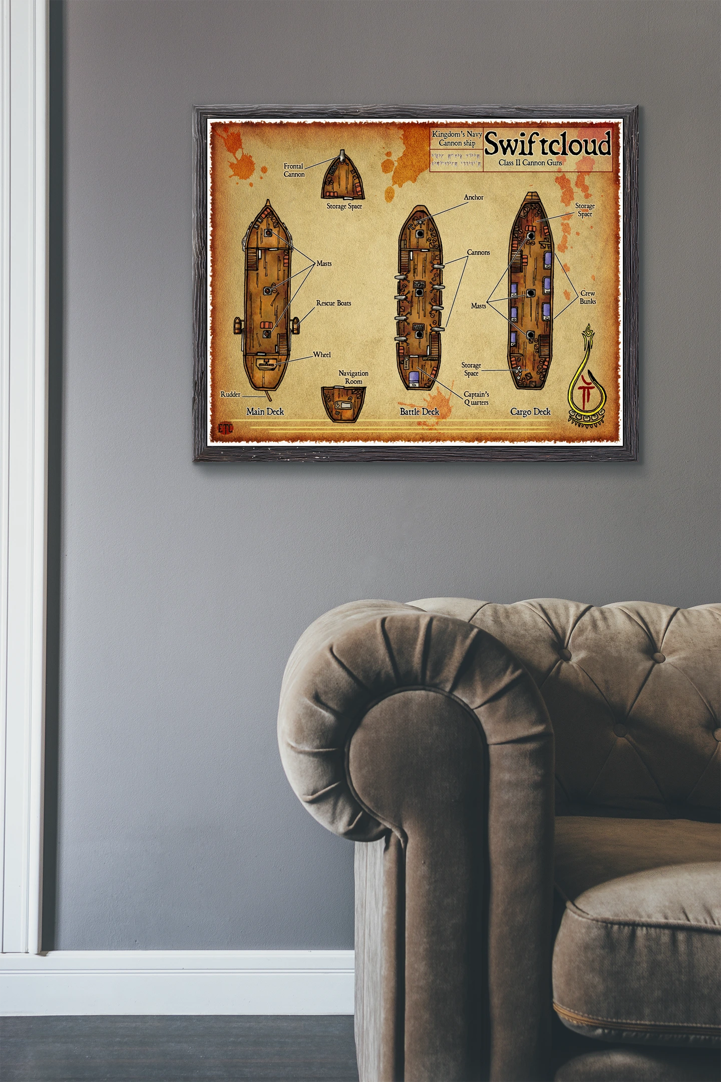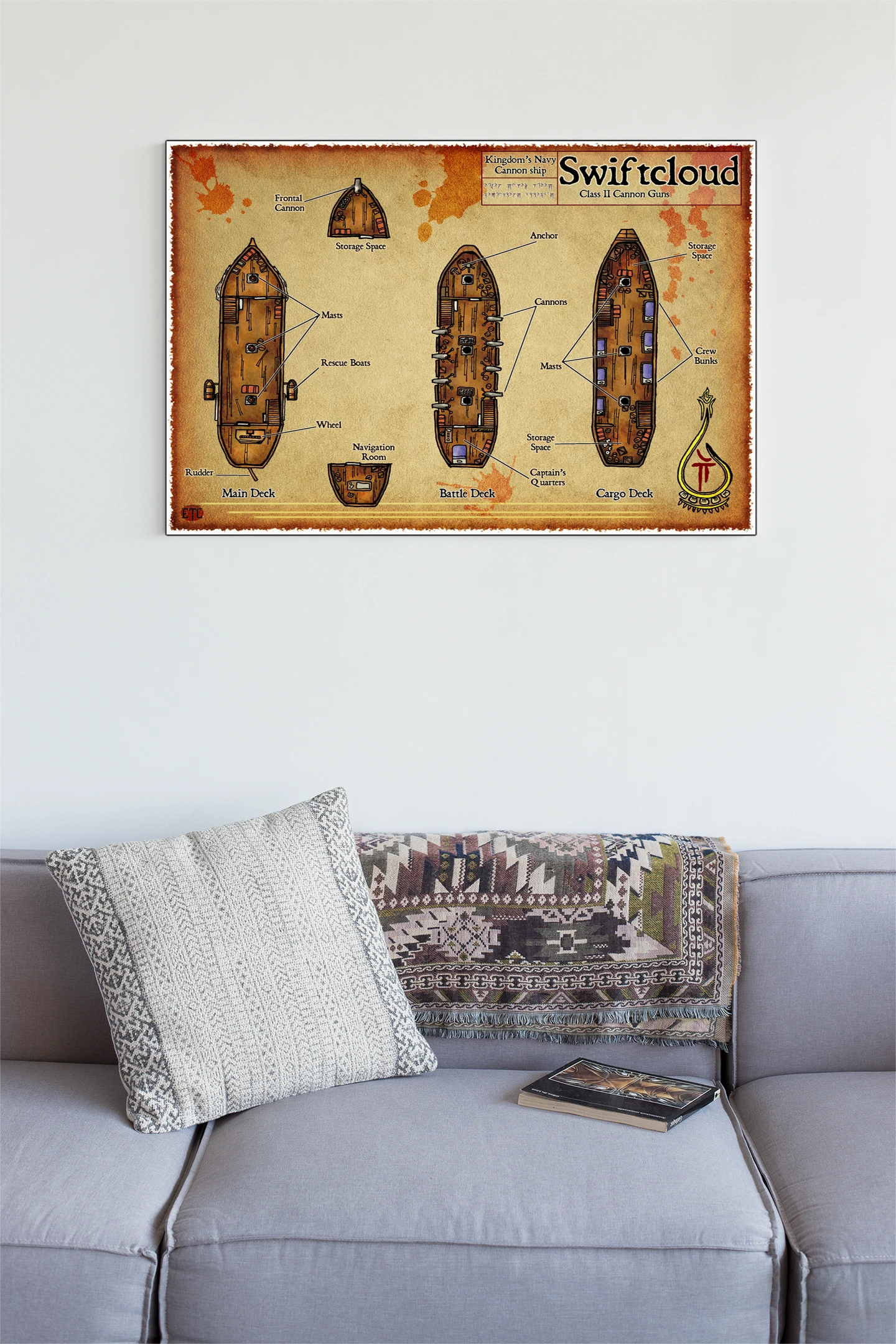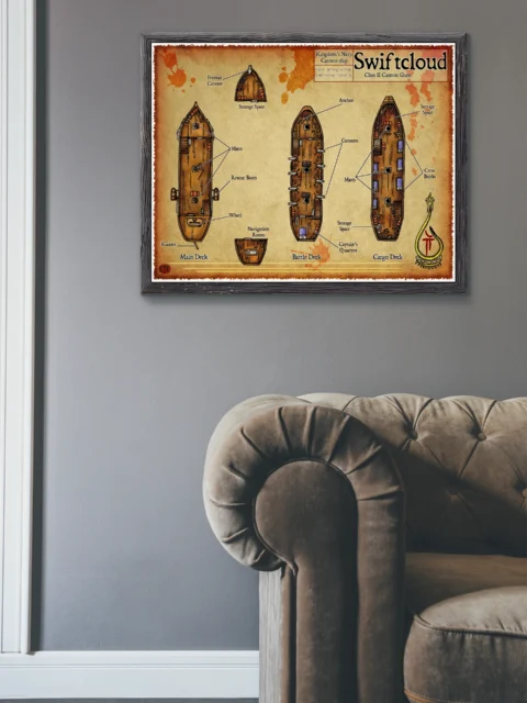 Owning a naval schematic signals a game master who runs maritime campaigns with technical authenticity. Players who navigate ship combat and coastal intrigue recognize this as campaign infrastructure. This swiftcloud fantasy battle map canvas print particularly anchors seafaring adventures with blueprint-level detail.