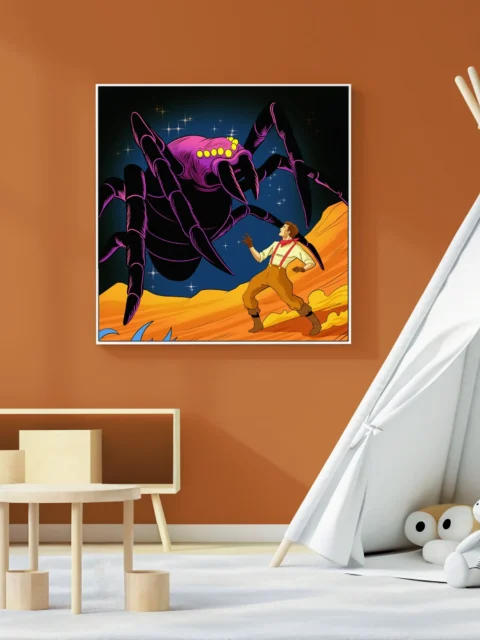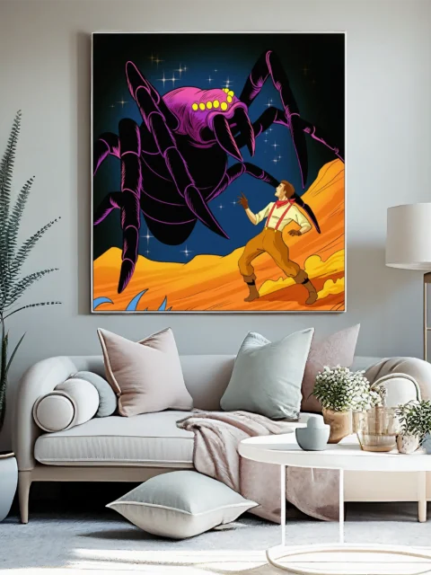 On the wall, the spider’s scale shift from card to canvas amplifies menace. Ward TCG collectors and pulp sci-fi enthusiasts gain a gallery-ready piece without card borders. This tarantula art trading card art canvas print delivers pure Fabricio Vainer illustration uncompromised.