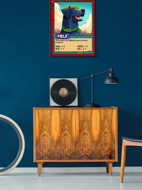 This piece fits naturally in a game room alongside other Ward TCG card art. Additionally, it works in a home office where playful energy balances focused work.