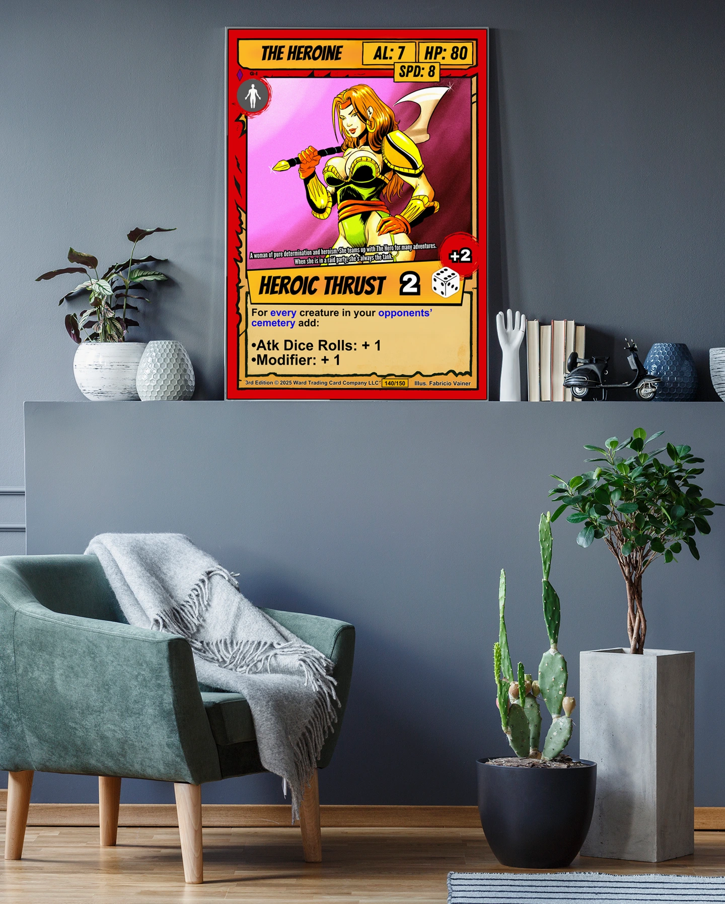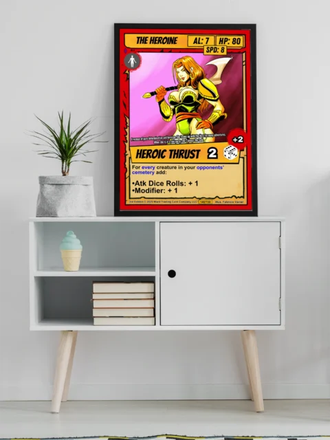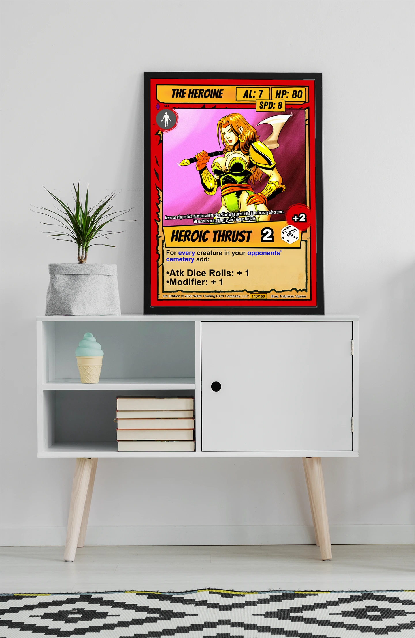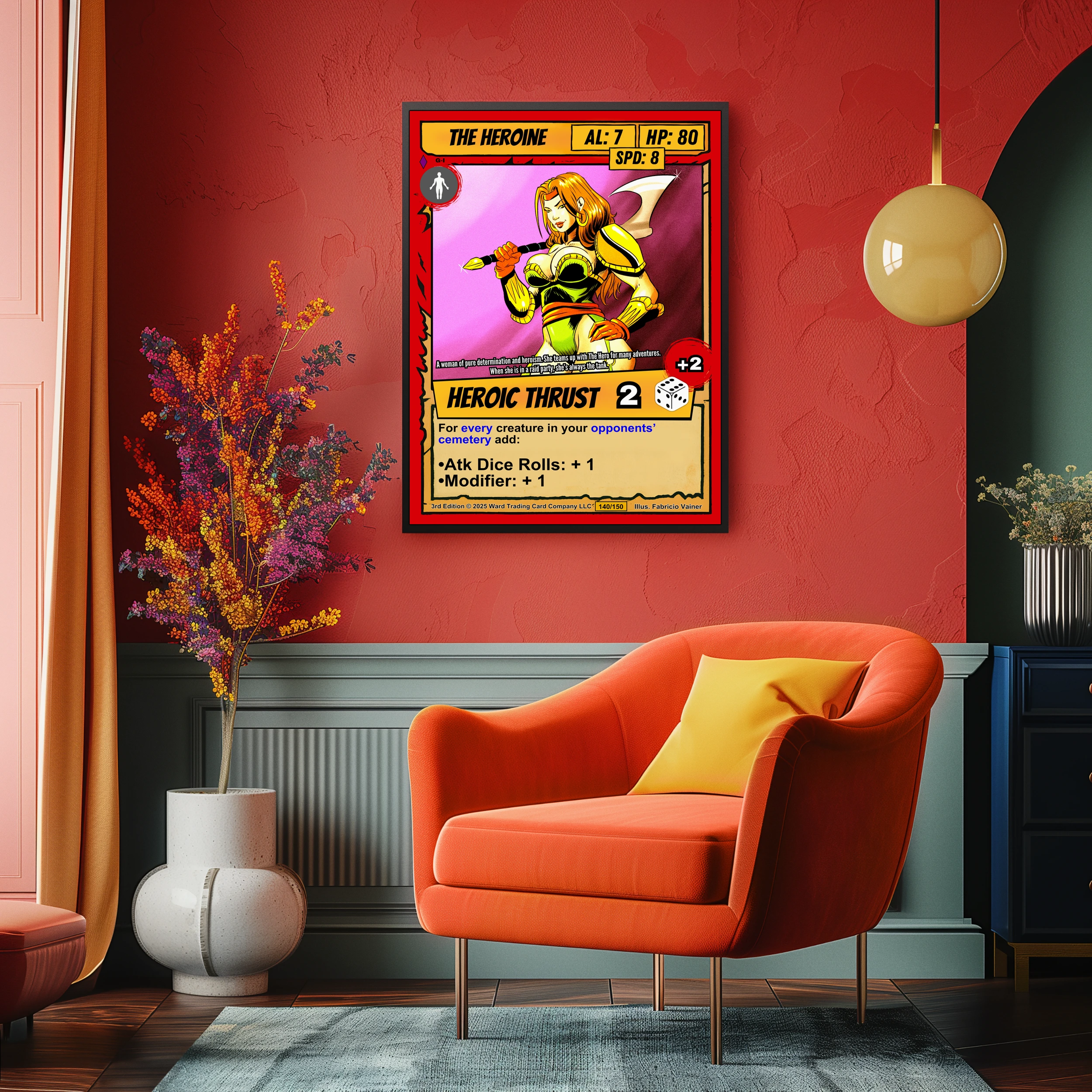 The card design reads clearly from across a room. Collectors who prize Ward TCG warrior characters will recognize the bold linework. This the heroine trading card canvas print captures the cel-shaded illustration style at wall scale.