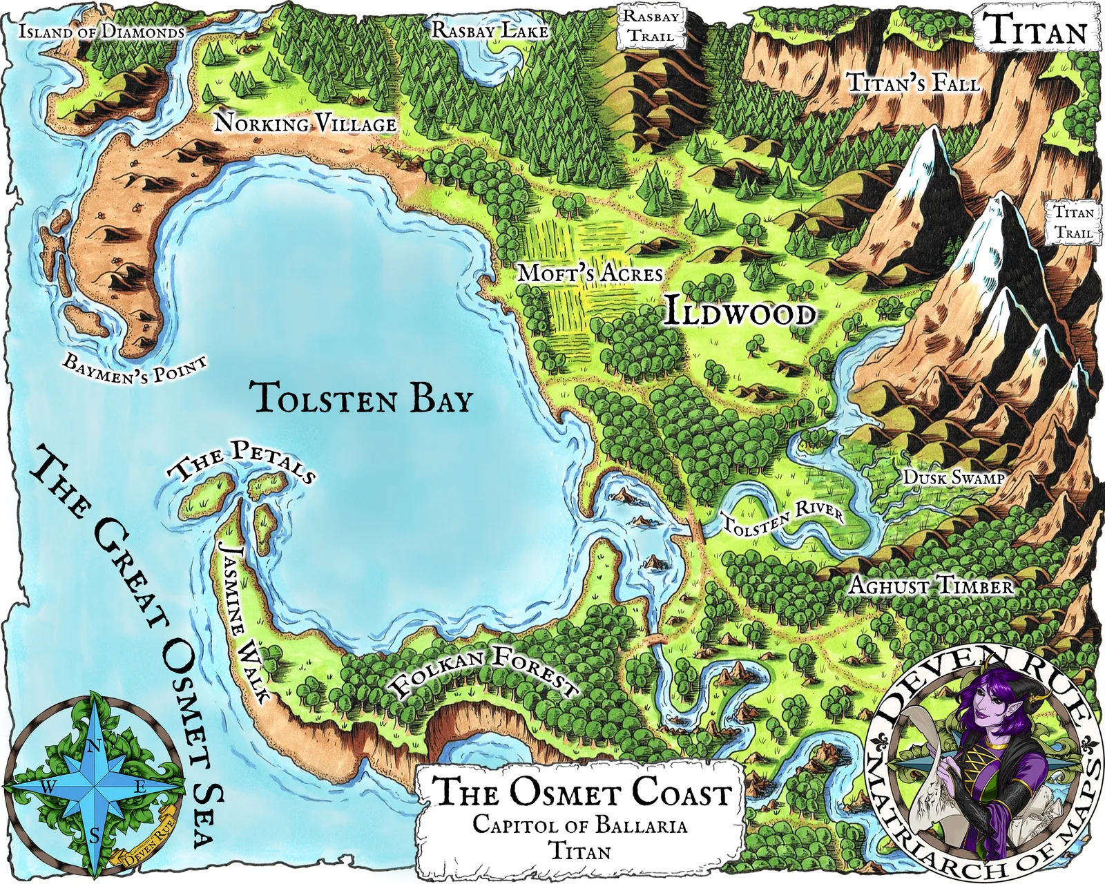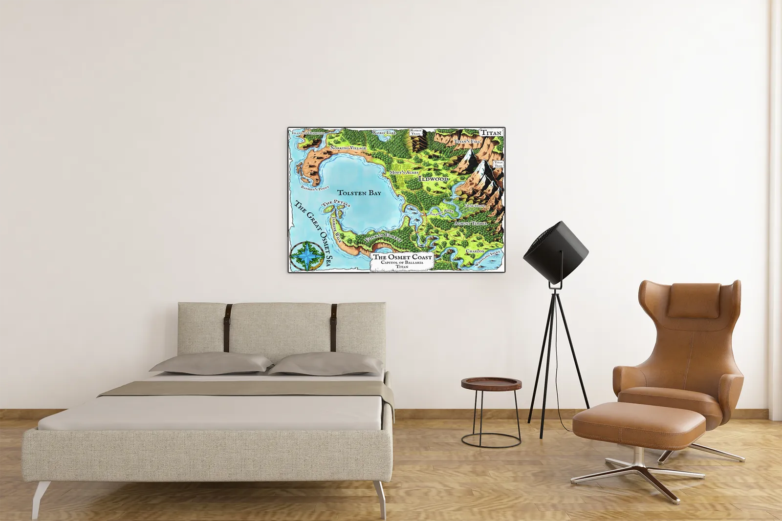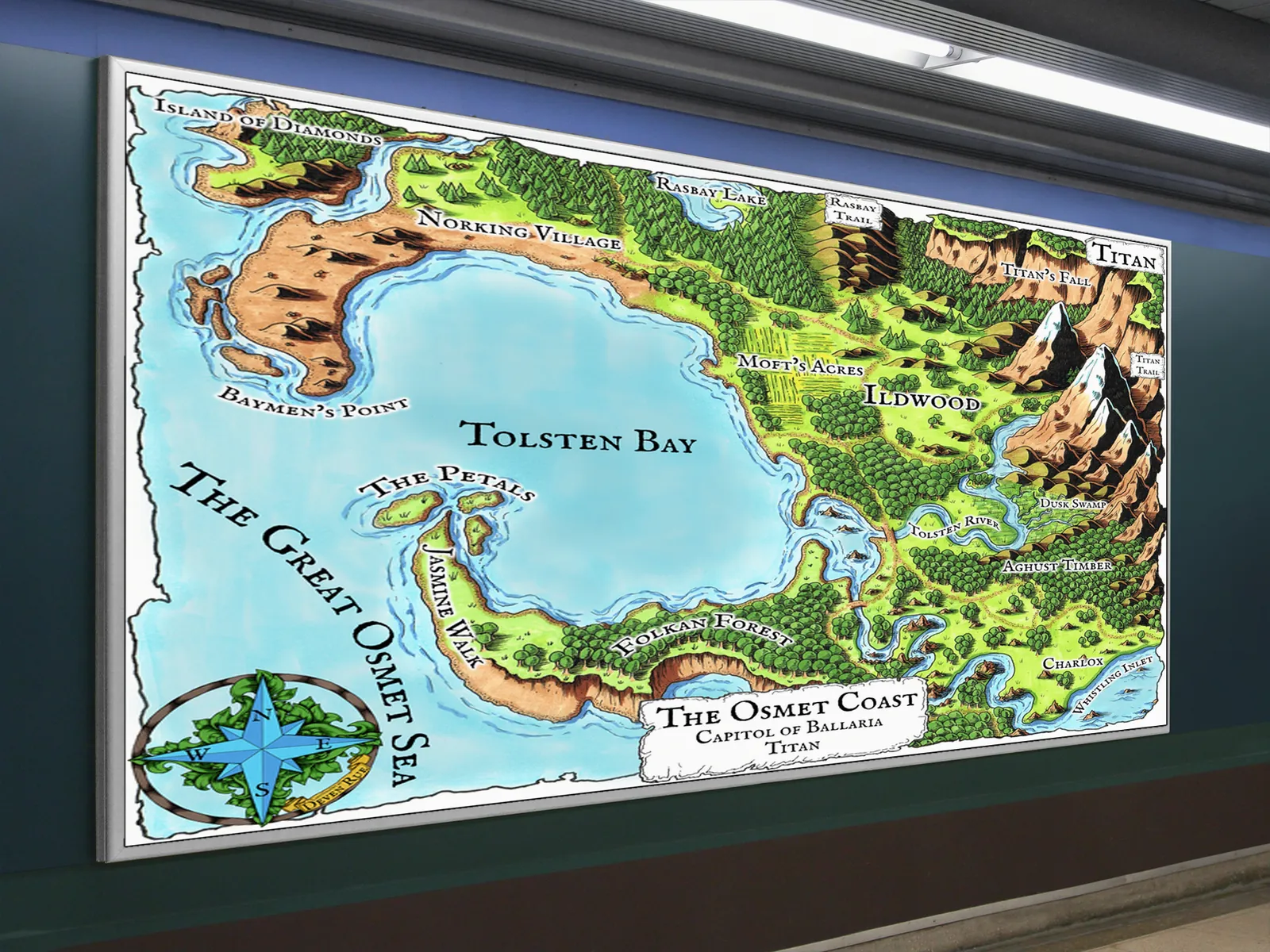 The Osmet Coast Map captures a vibrant shoreline with clear routes and landmarks. Osmet Coast Map canvas wall art enhances campaign planning and exploration.