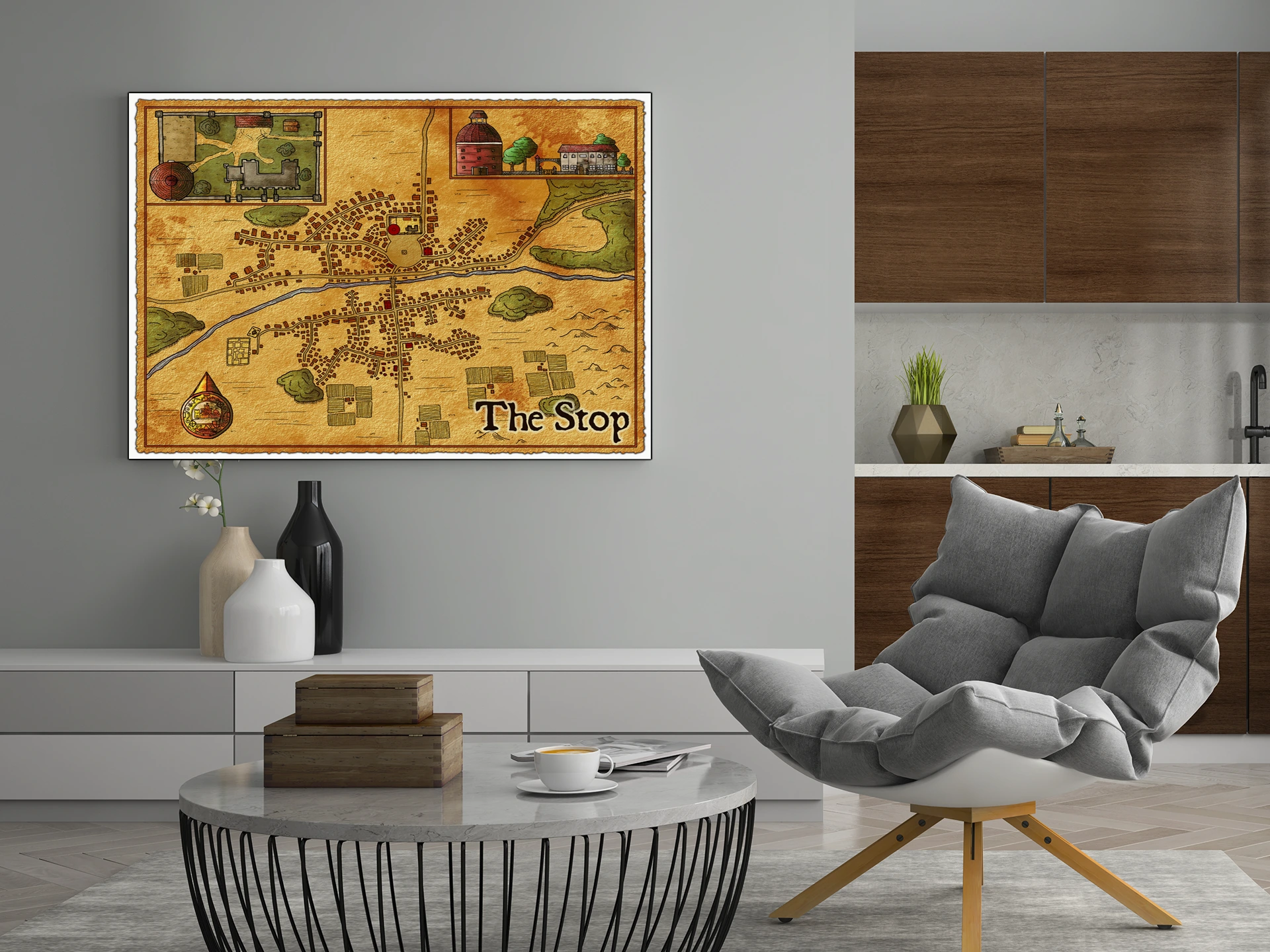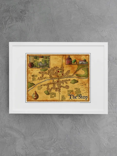 Dungeon masters running long-form campaigns need settlements that feel lived-in and tactically complete. This map serves players who value functional encounter design over decorative abstraction. The stop fantasy battle map canvas print particularly suits DMs who built entire story arcs around one recurring town.