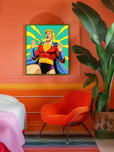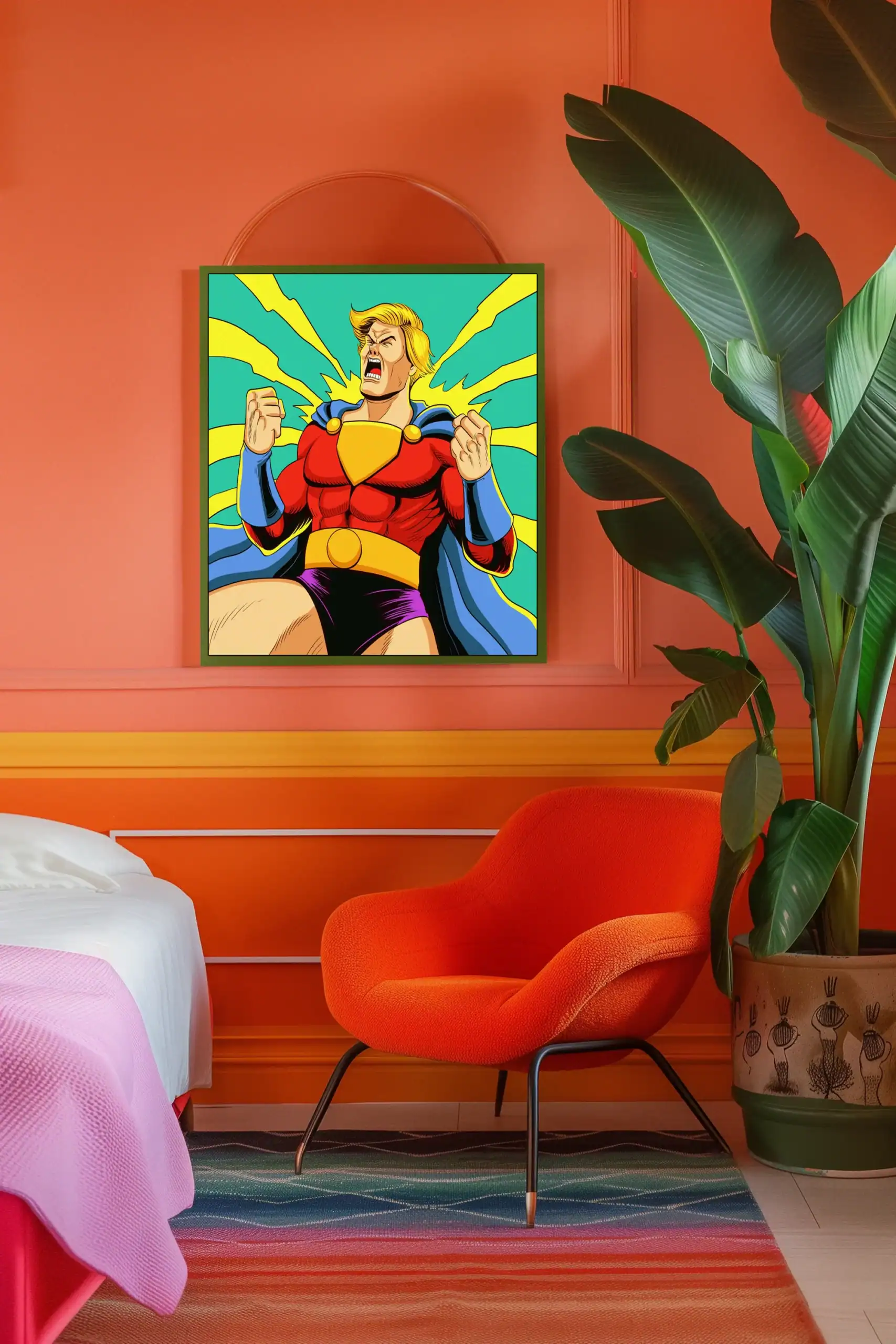 Creative studios and gaming dens benefit from this intense superhero presence during sessions. The bold colors moreover energize any workspace dedicated to fantasy gaming.