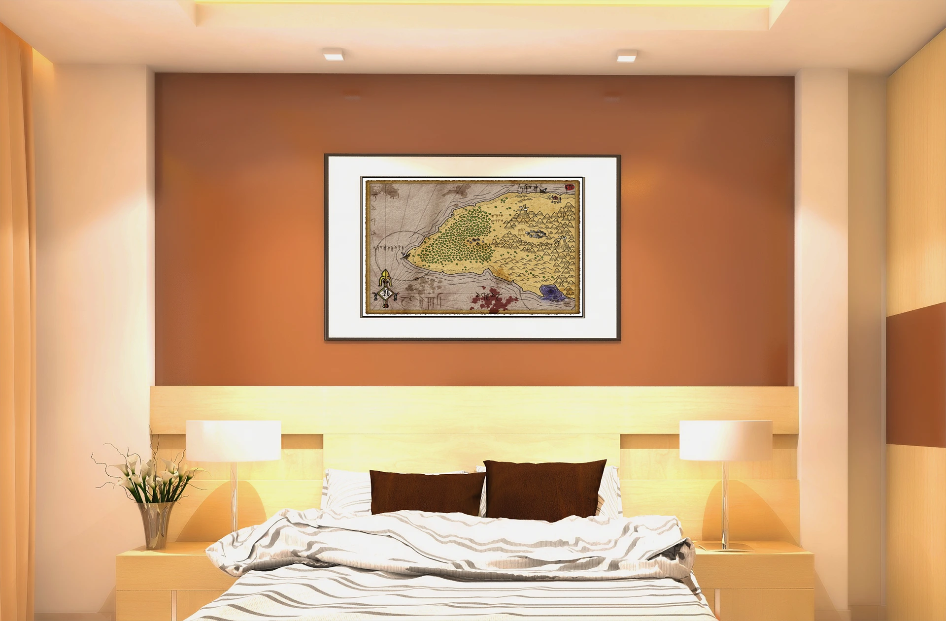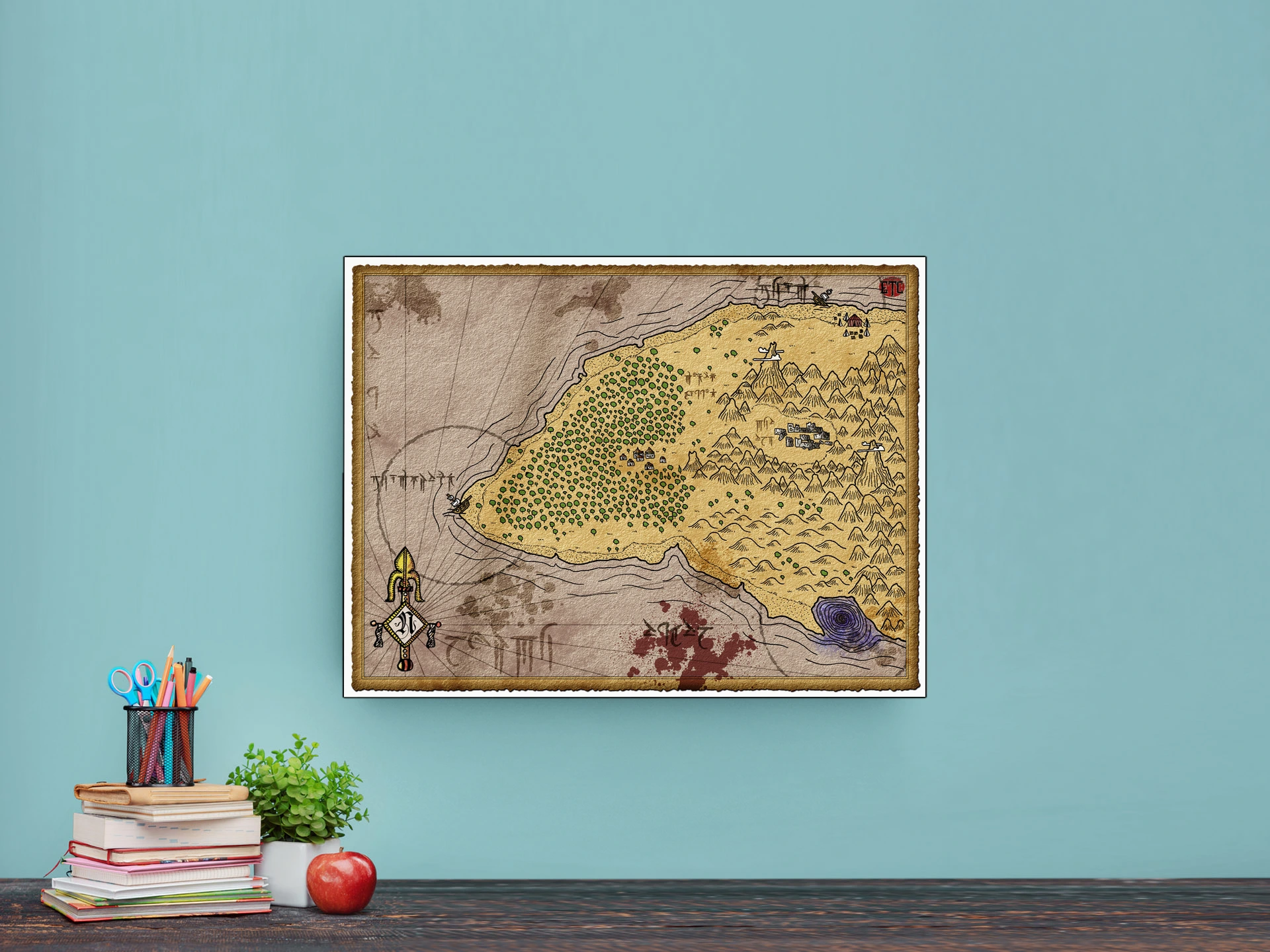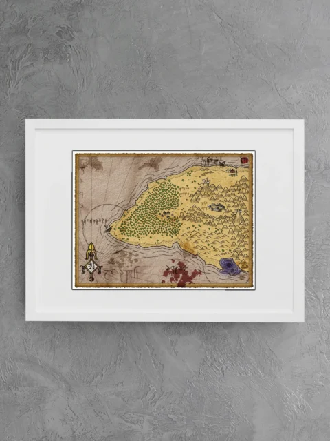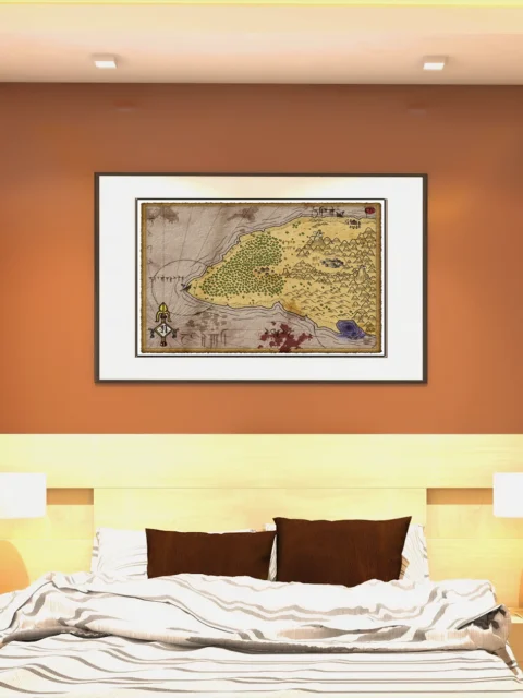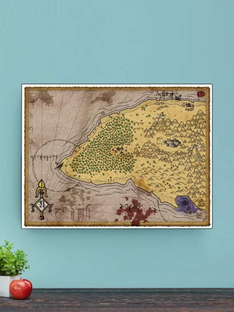 Dungeon masters reference this map when designing coastal hexcrawls or island-hopping campaigns. Players who build sandbox worlds need visual anchors for exploration sessions. The treasure island no labels fantasy battle map canvas print supports open-ended adventure design, particularly for wilderness campaigns.
