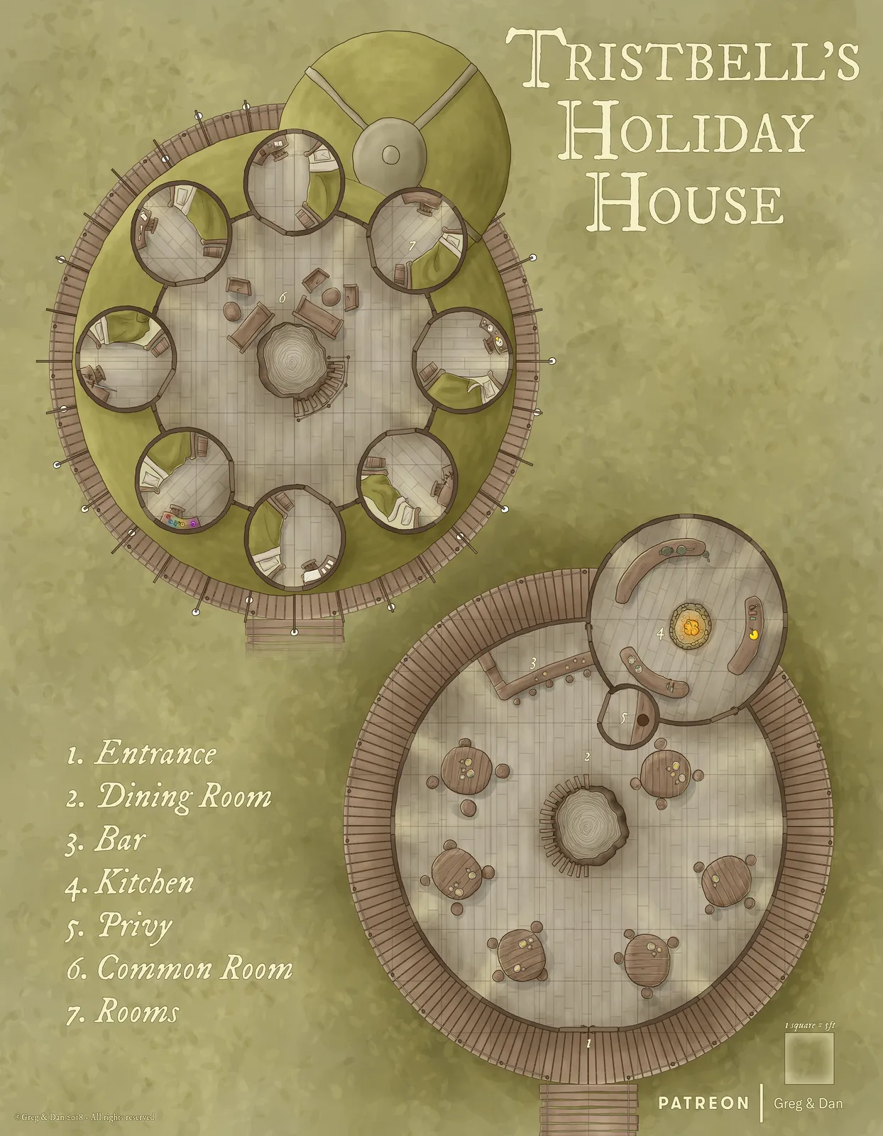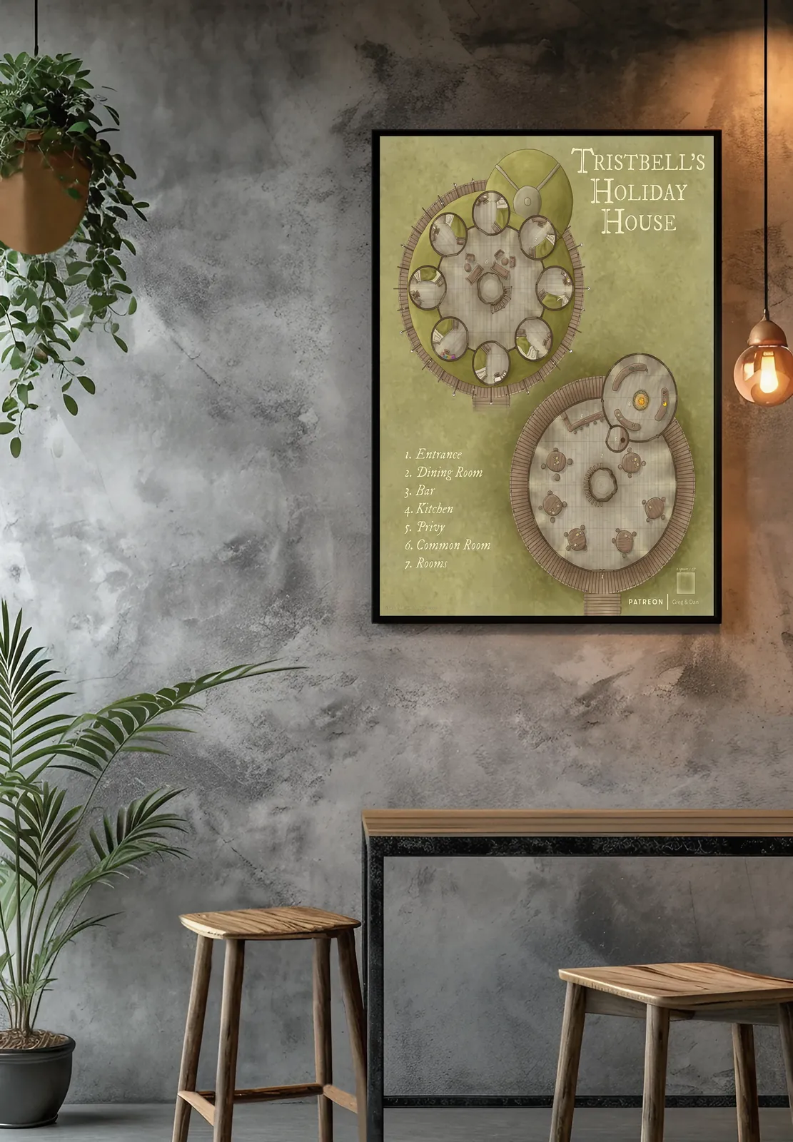 Tristbell’s Holiday House depicts a welcoming fantasy residence designed for roleplay, social scenes, and character-driven storytelling.