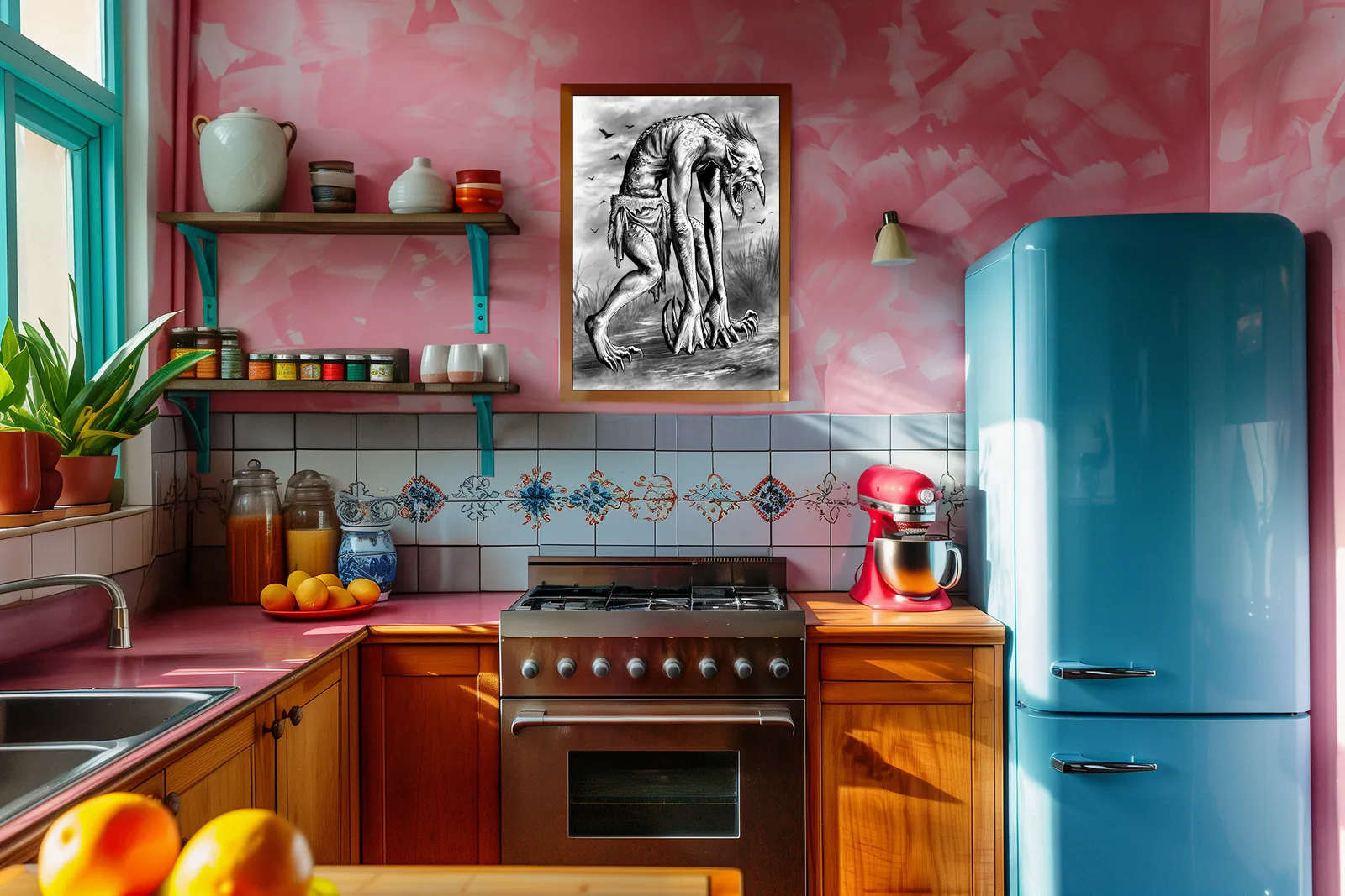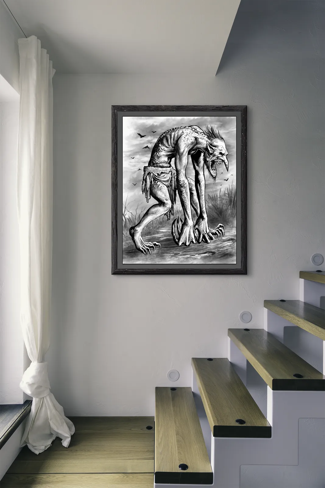 Moreover, this artwork resonates with collectors, gamers, and tabletop fans who want a ferocious focal image on a wall in a studio, game room, or creative space inspired by brutal fantasy encounters.