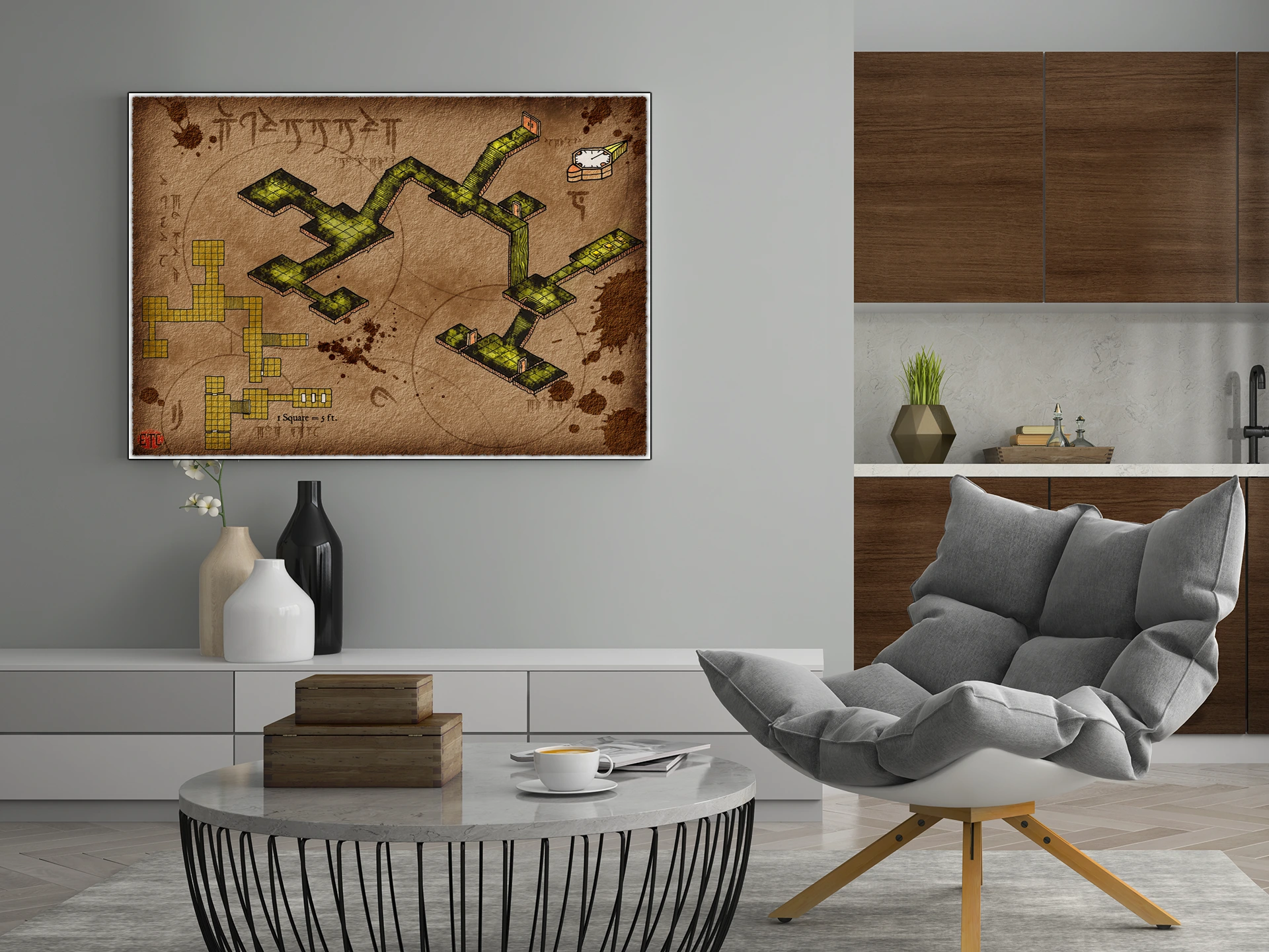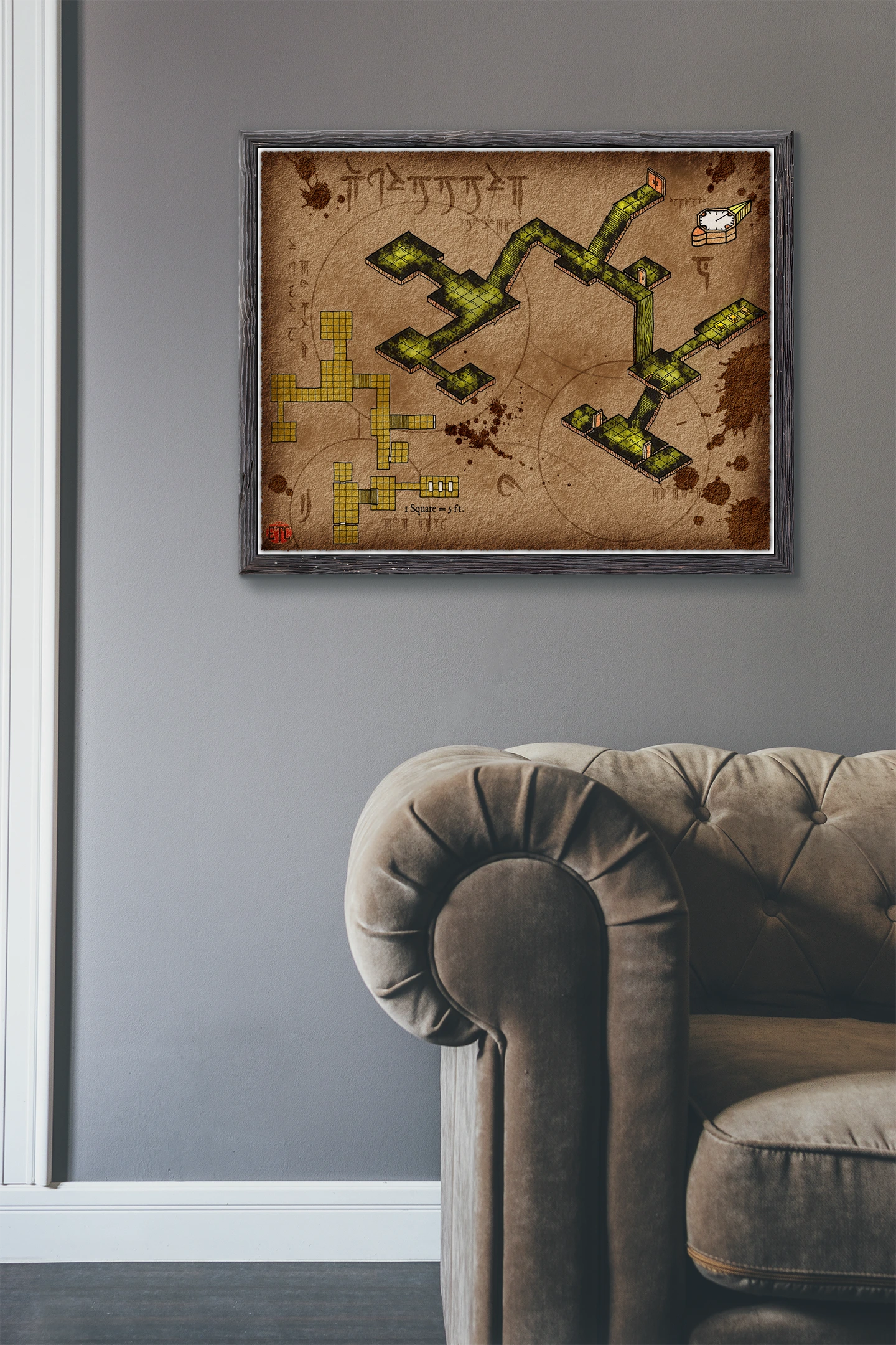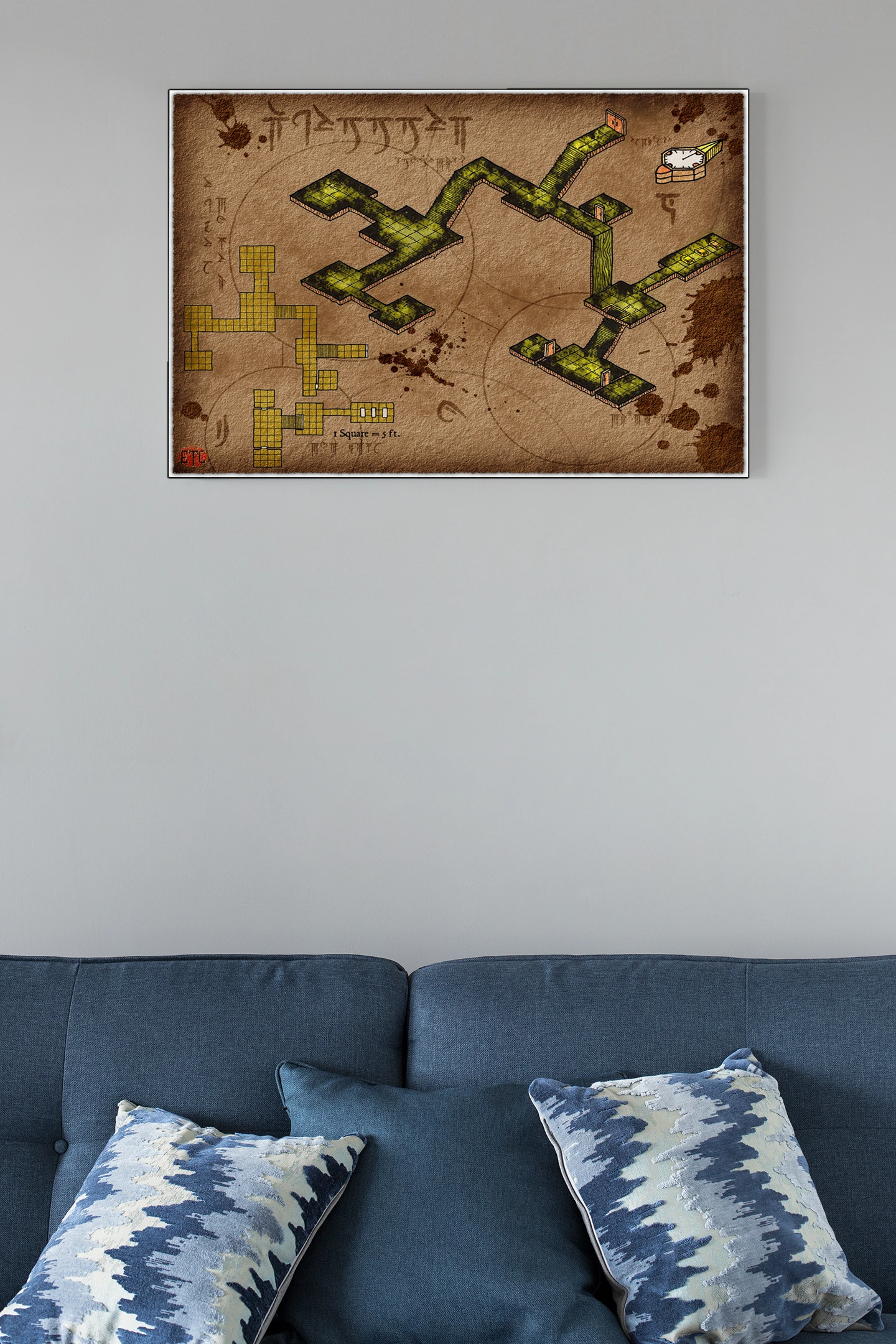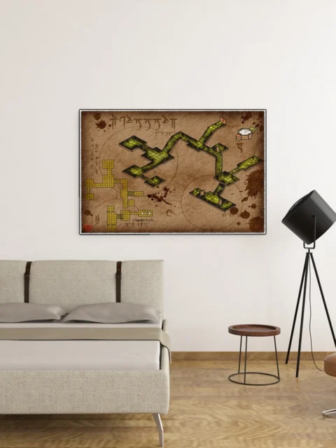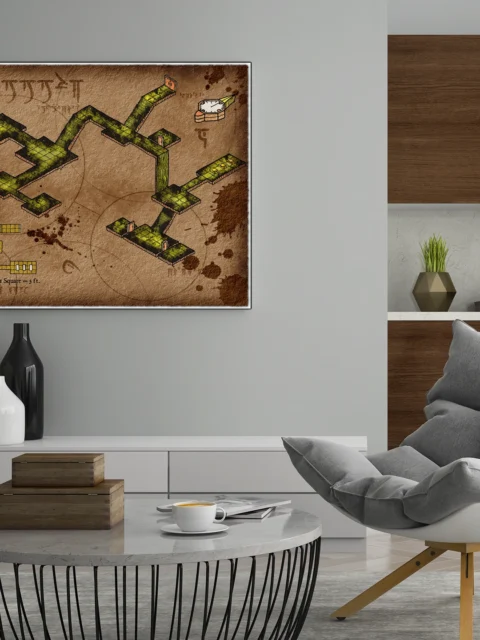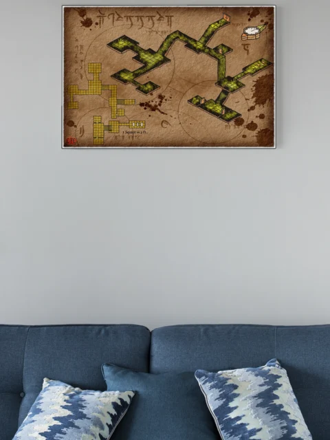 This map runs without a predetermined story locked into the chambers. Dungeon masters building modular encounters need blank canvases they can adapt campaign to campaign. The underground lair no labels fantasy battle map canvas print particularly fits DMs who prefer player-driven exploration.