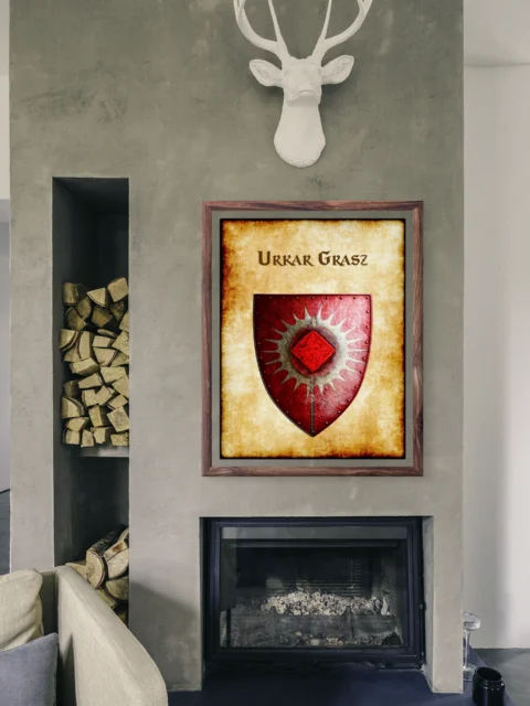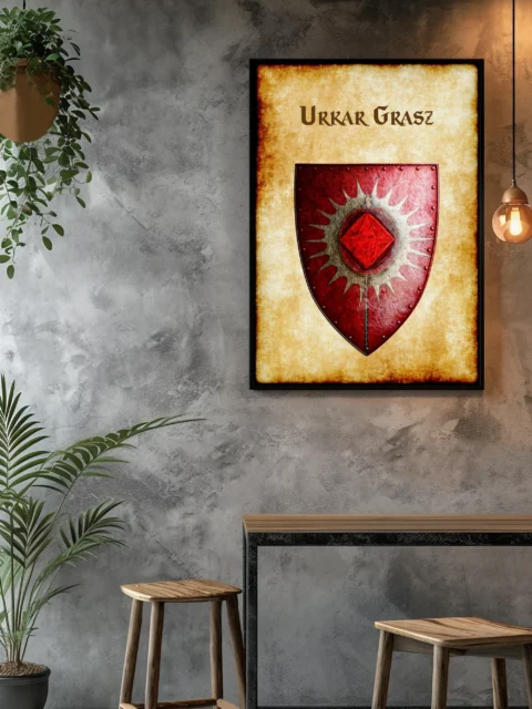 The diamond-and-sunburst charge distinguishes this from typical Greyhawk faction symbols. Collectors value heraldic pieces that represent specific noble houses or guilds. Particularly, this urkar grasz Greyhawk heraldry canvas print appeals to completionist enthusiasts.