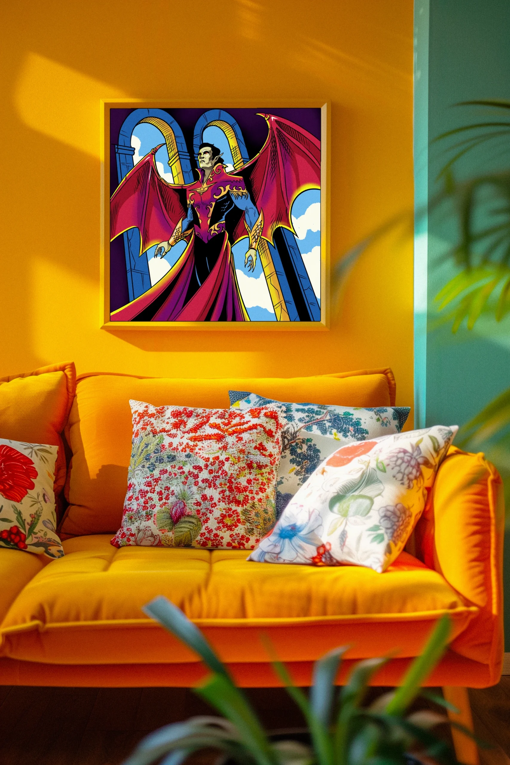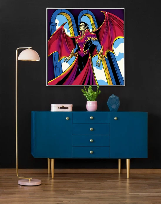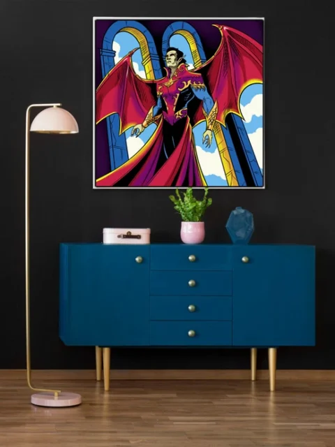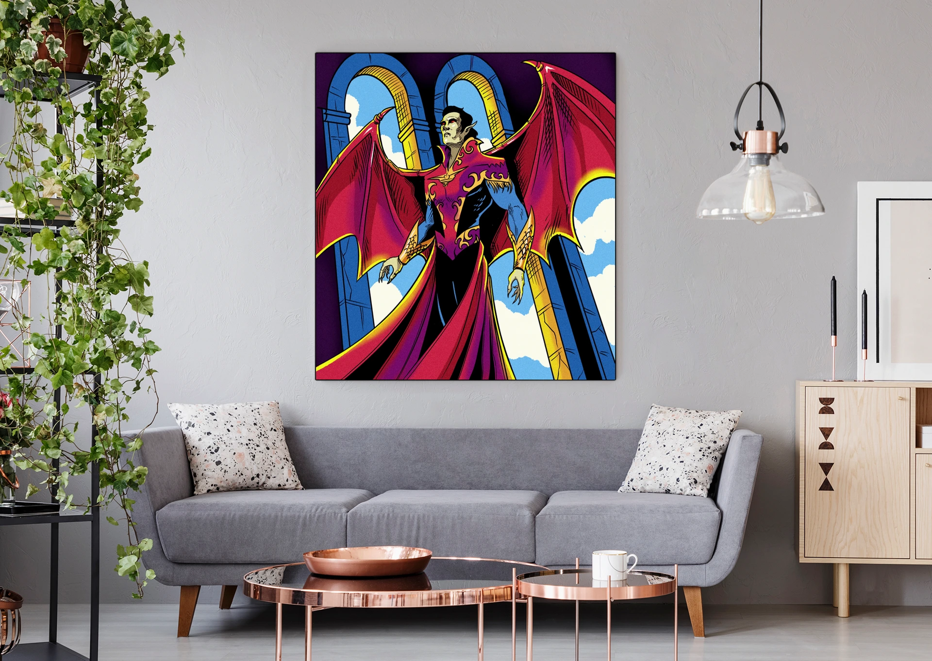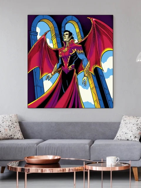 On the wall, the bold outlines and high-contrast palette hold intensity at display scale. Ward TCG collectors and gothic fantasy enthusiasts gain a gallery-ready piece of Vainer’s creature illustration. This vampire lord art trading card art canvas print delivers pure artwork without card borders.