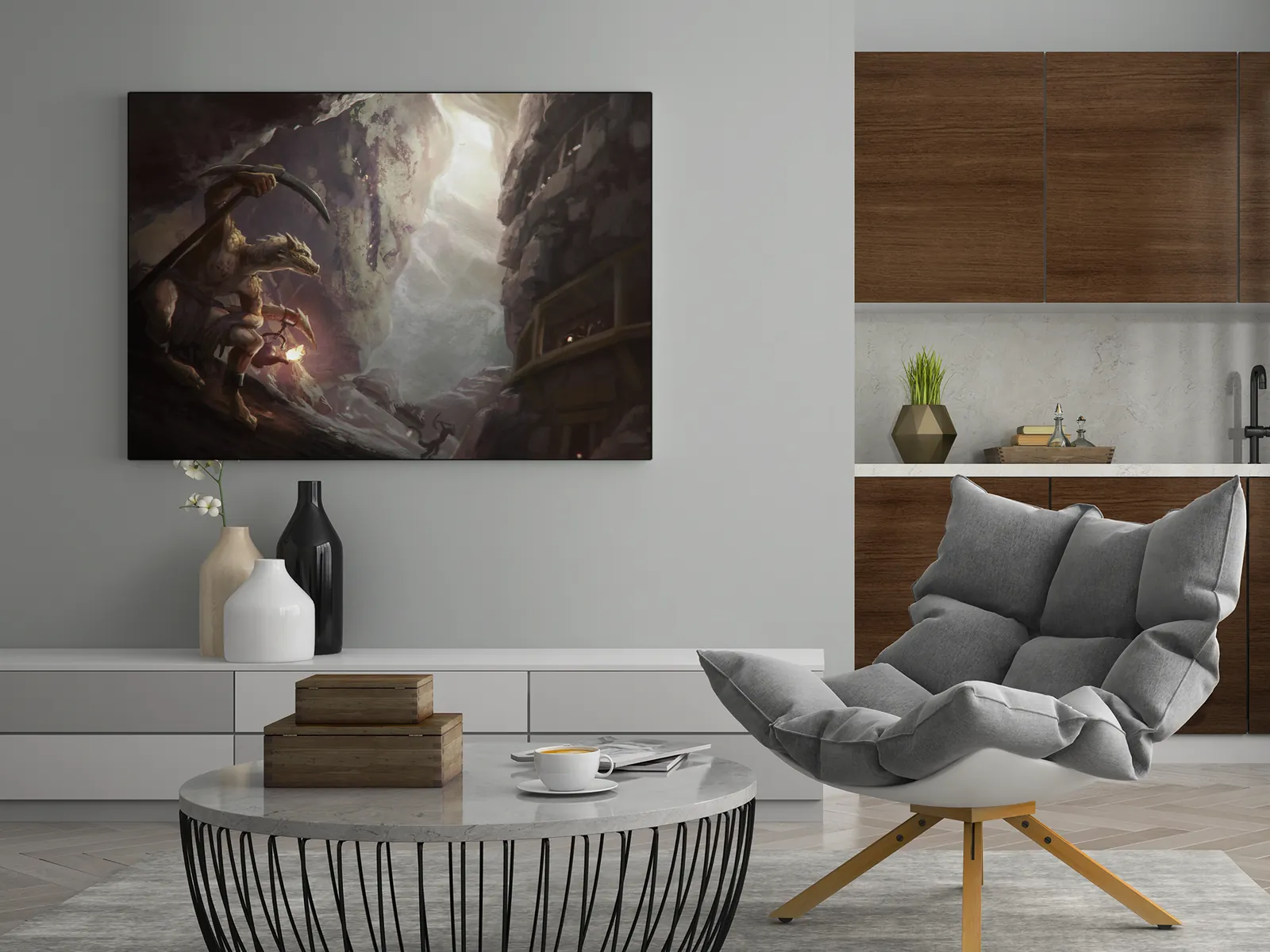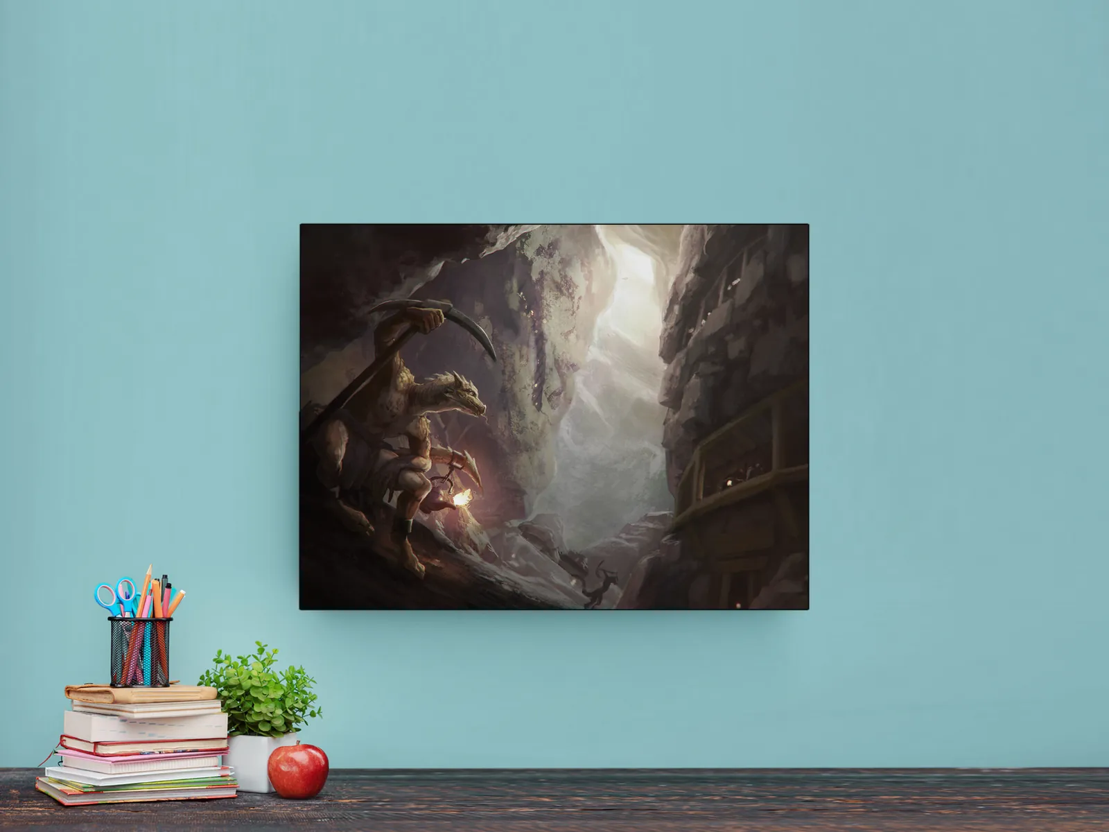 Moreover, this artwork appeals to collectors who enjoy creature-centric fantasy, gamers or tabletop fans designing low-ceiling encounters, and anyone enhancing a wall, studio, game room, or creative space with gritty, high-risk atmosphere.