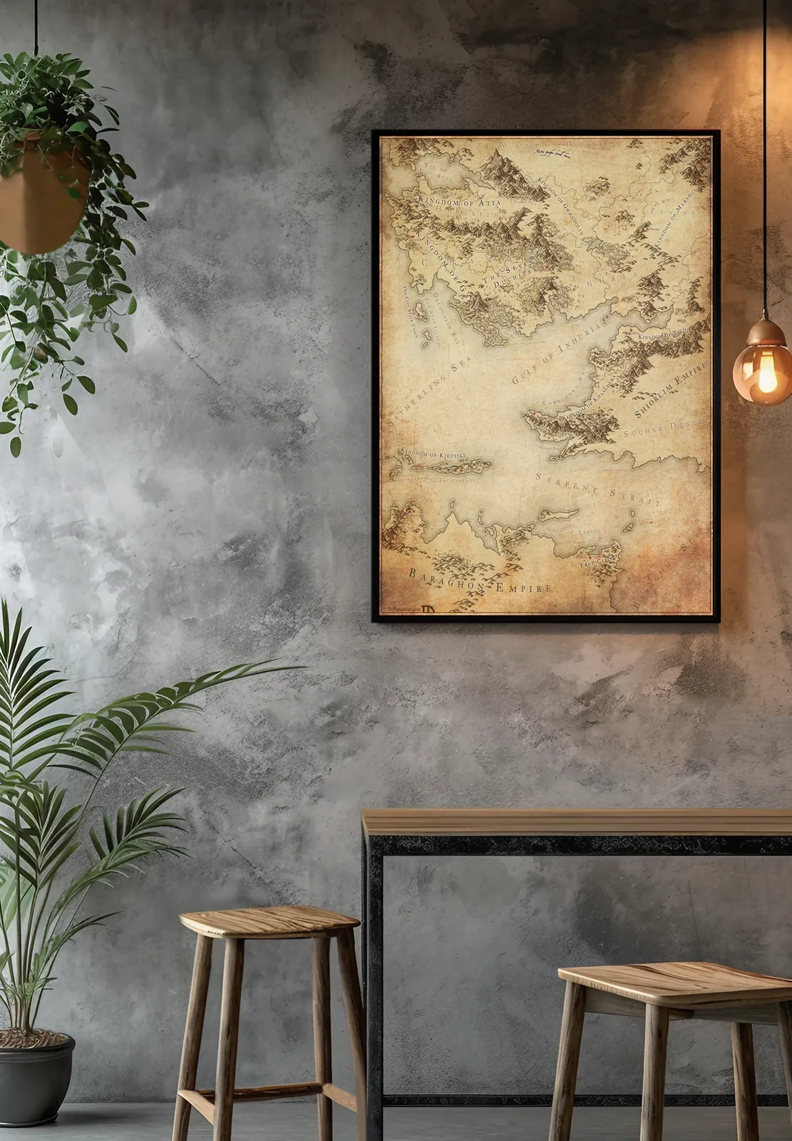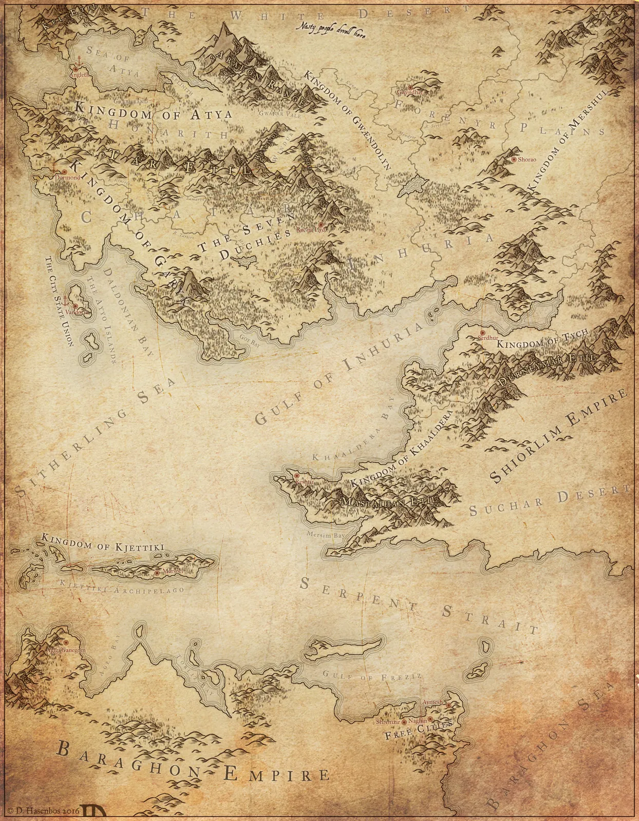 Western Char an Tyra illustrates a politically rich fantasy region defined by empires, kingdoms, and sweeping geographic features.