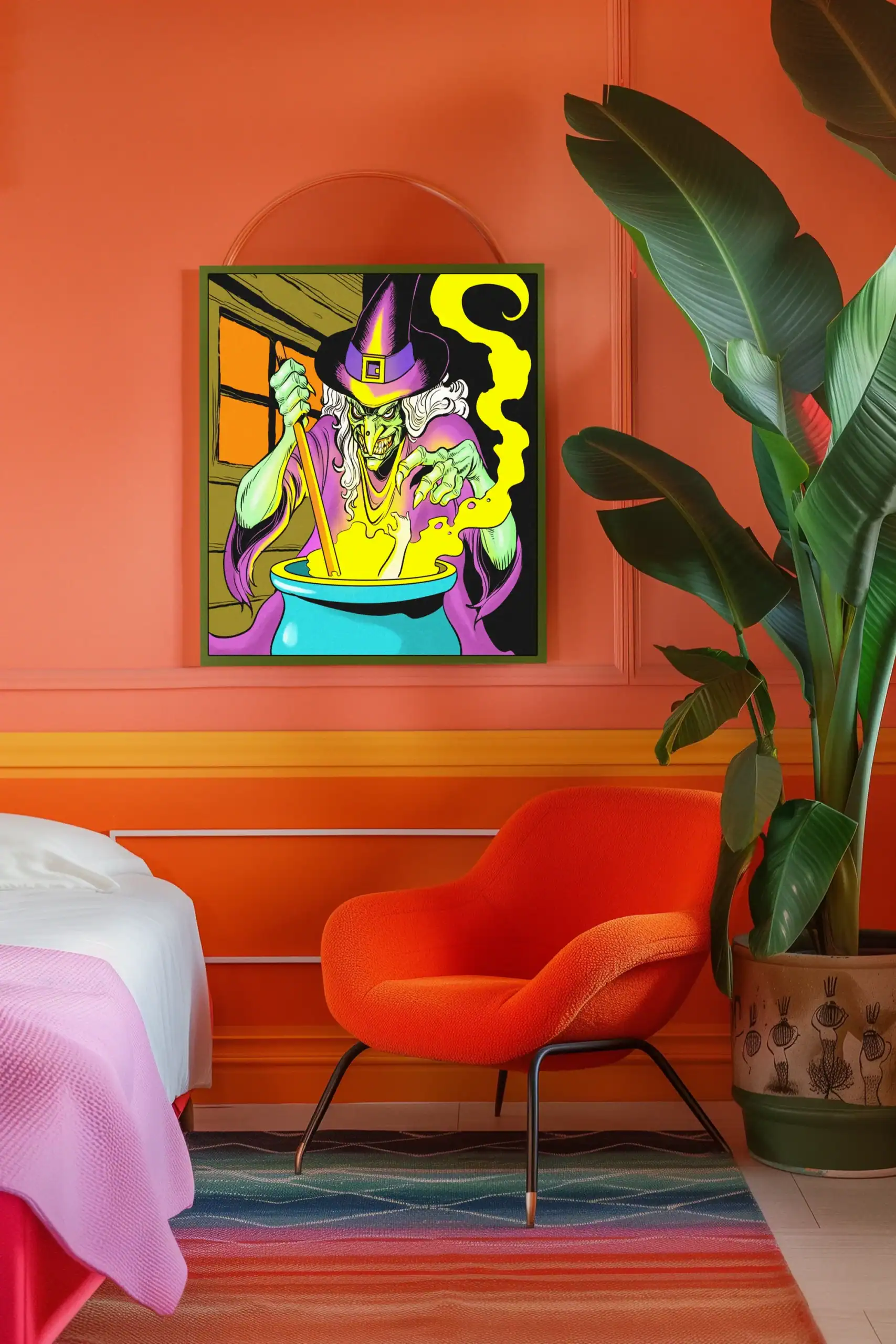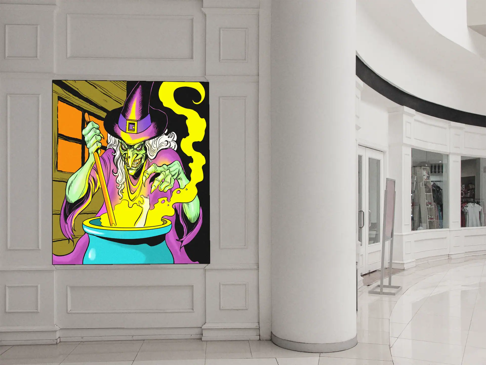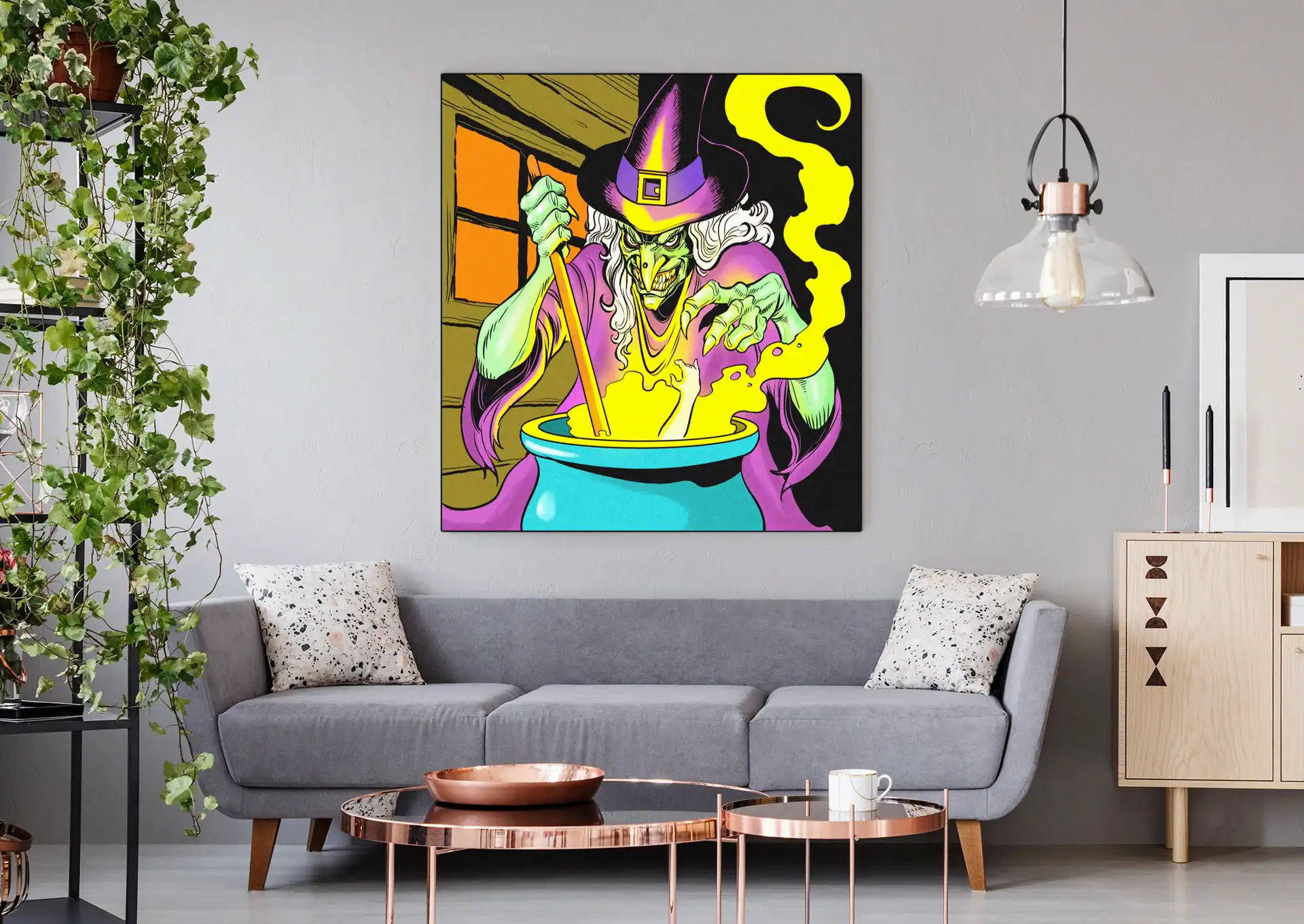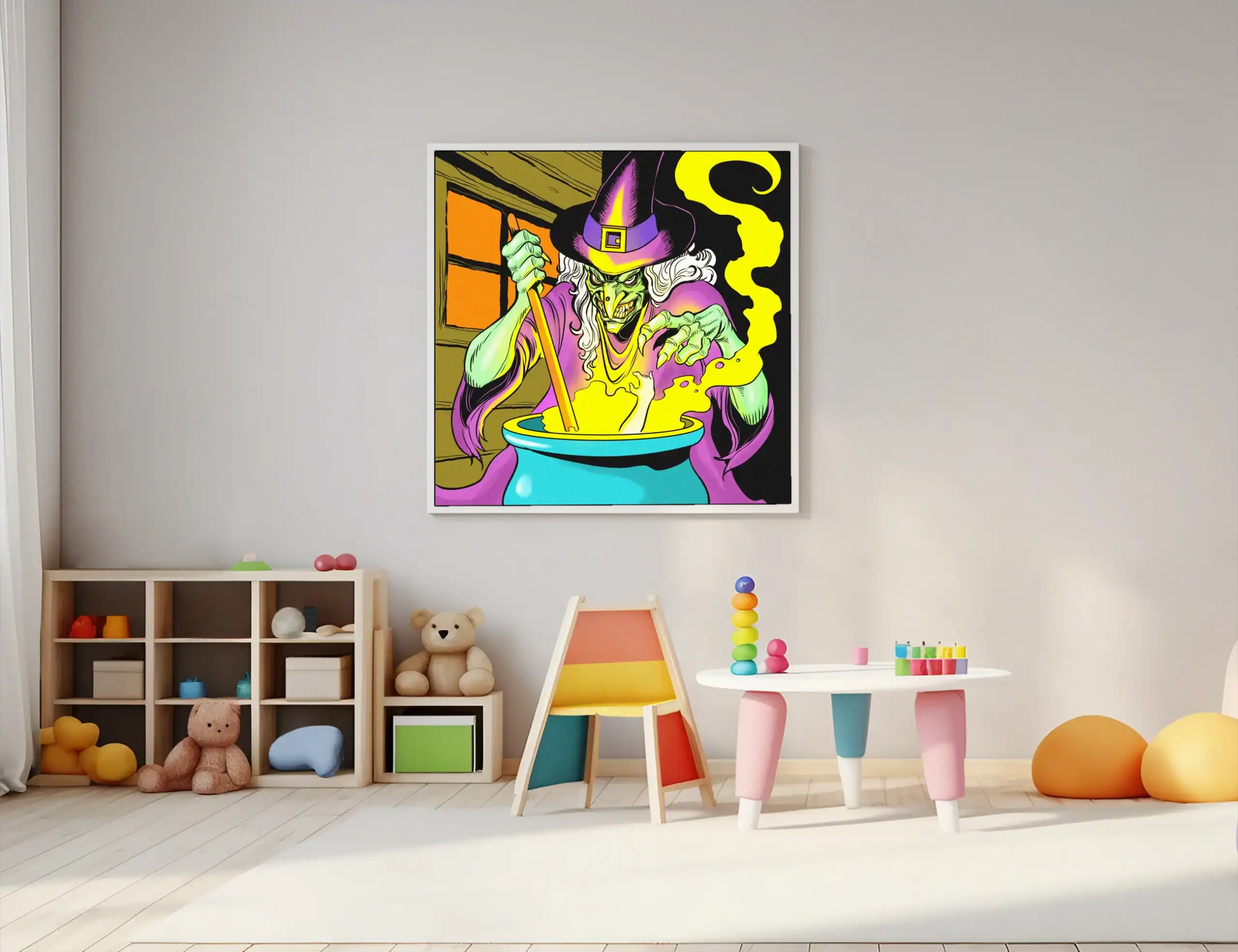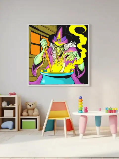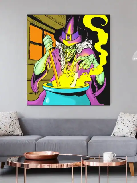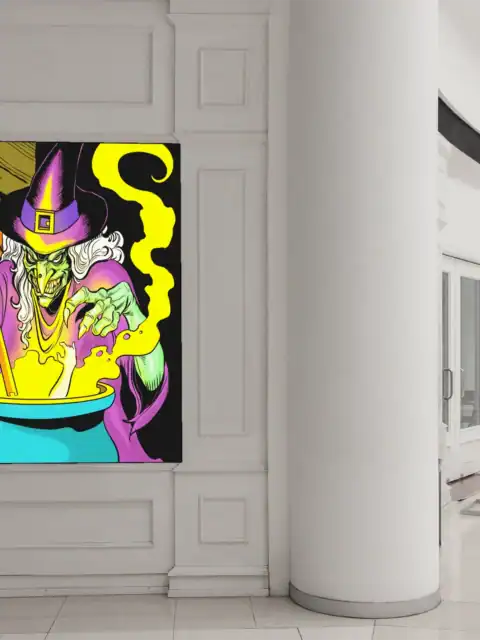 Horror-themed campaigns gain their perfect antagonist through this menacing witch design. Collectors who appreciate retro comic aesthetics find genuine 1990s nostalgia here. Particularly, this witch art trading card canvas print delivers theatrical villainy for any gaming space.
