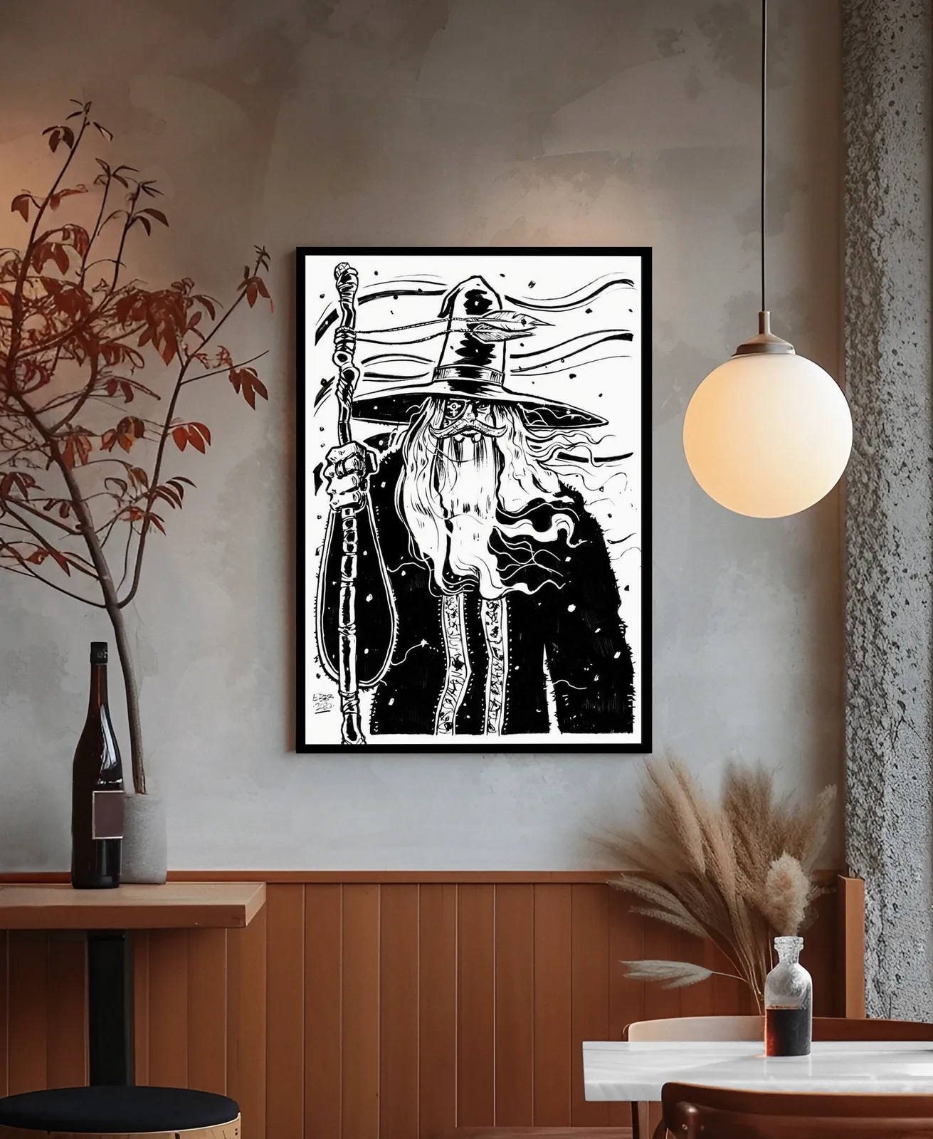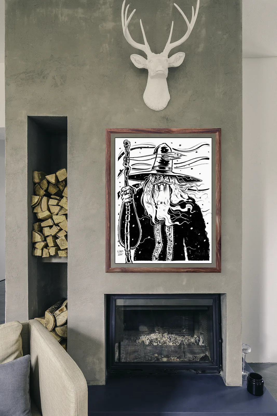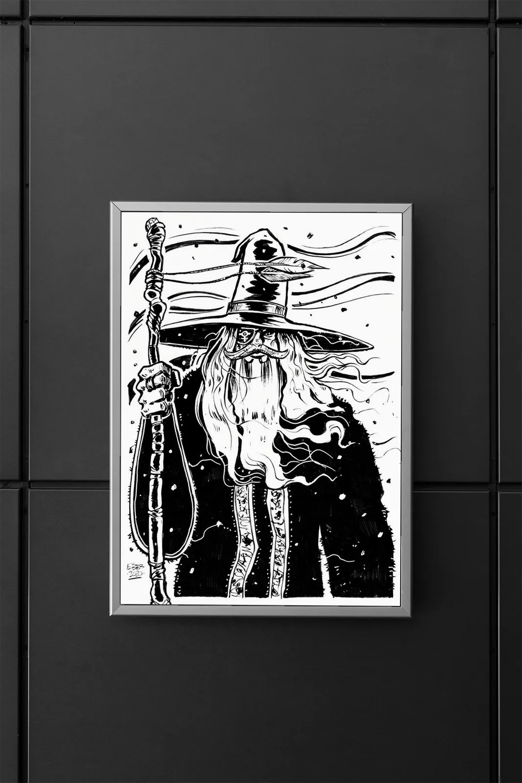 Wizard presents a solitary spellcaster framed by wind and shadow. This piece features Wizard dark fantasy canvas art as a striking symbol of arcane authority.