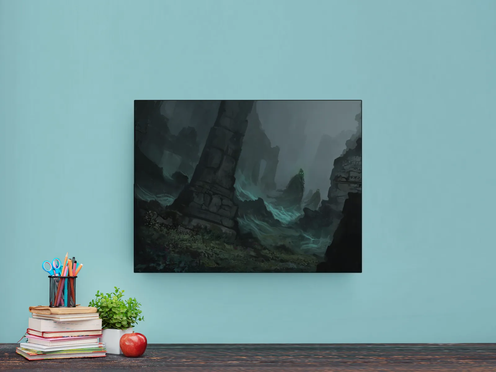 Canvas artwork focused on atmospheric dread